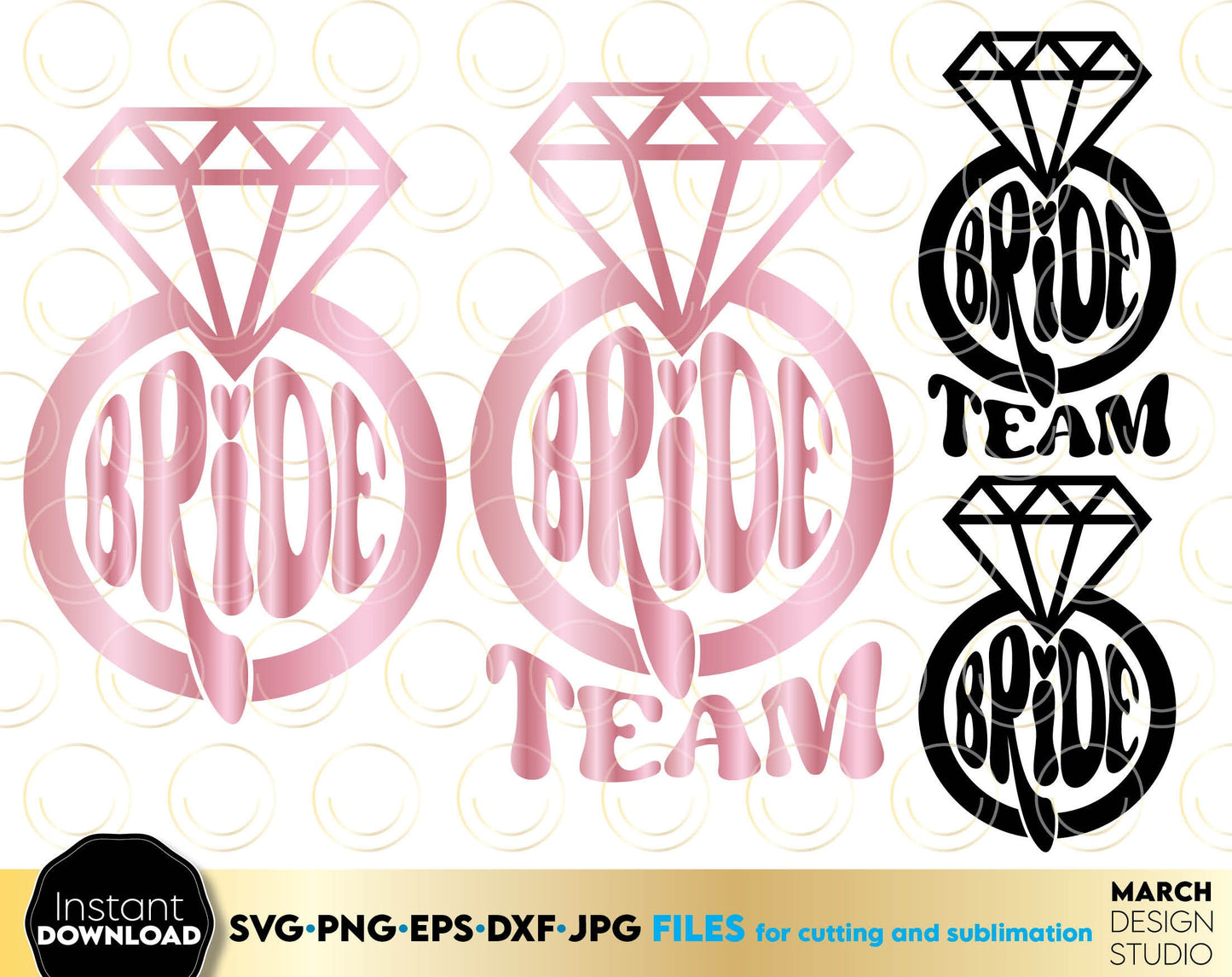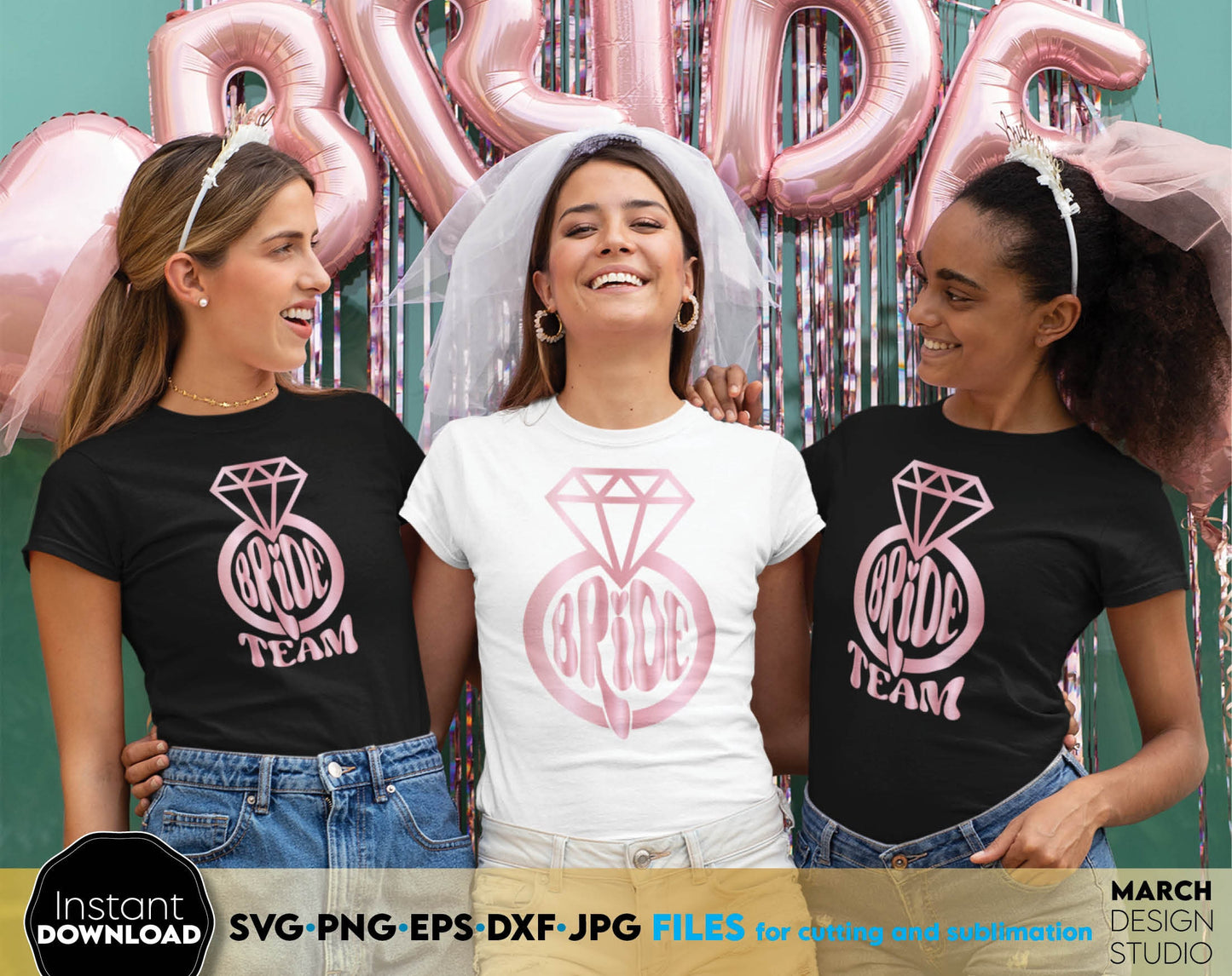 Bride and Bride team bachelorette party shirts design for You bachelorette party. svg, png, dxf, jpg, eps files included. Use for cutting from vinyl, sublimation or laser cut projects. Compatible with Cricut, Silhouette or other. Buy now for a good price and enjoy!