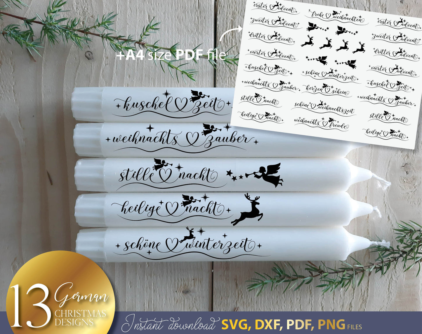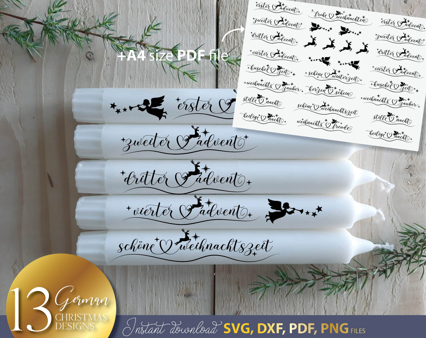 Bundle German Words Christmas SVG Cut File German Lettering Christmas Plotter File Candle Texts Christmas Candle Design Laserdatei Weihnacht