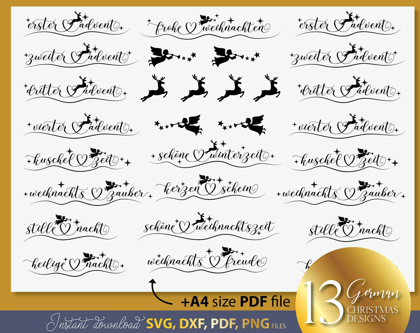 Bundle German Words Christmas SVG Cut File German Lettering Christmas for You Christmas evening ornaments. Use for cutting from vinyl, sublimation or laser cut projects.