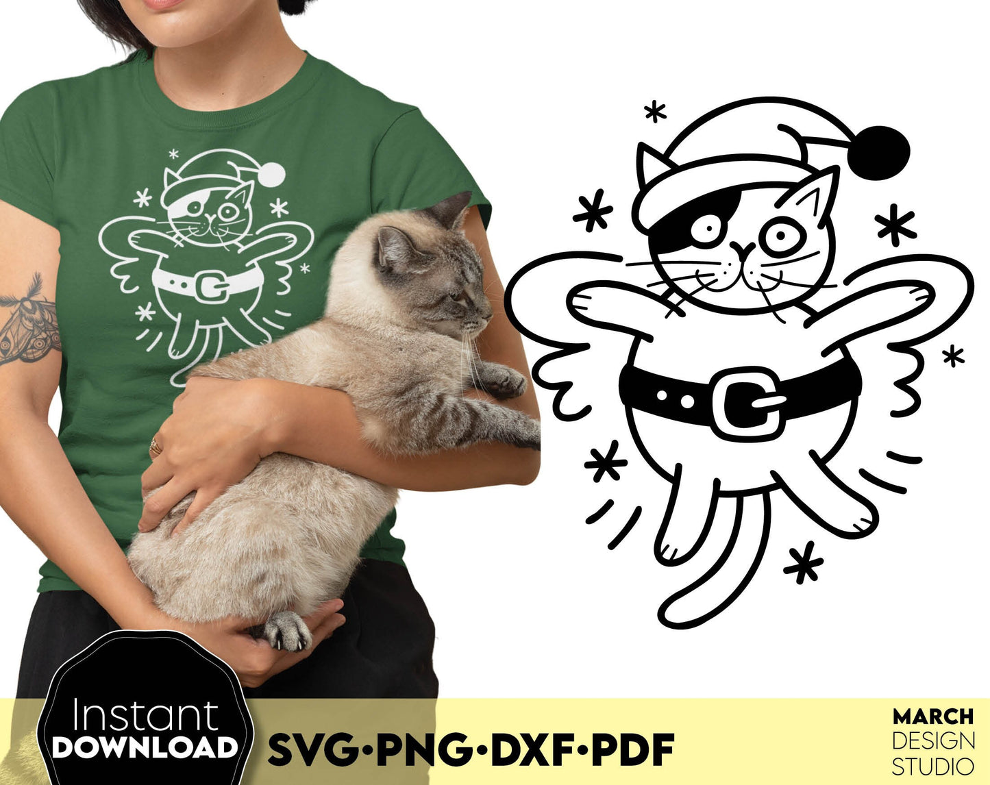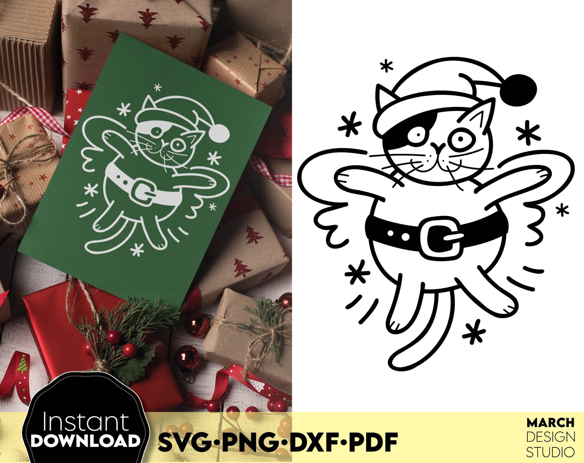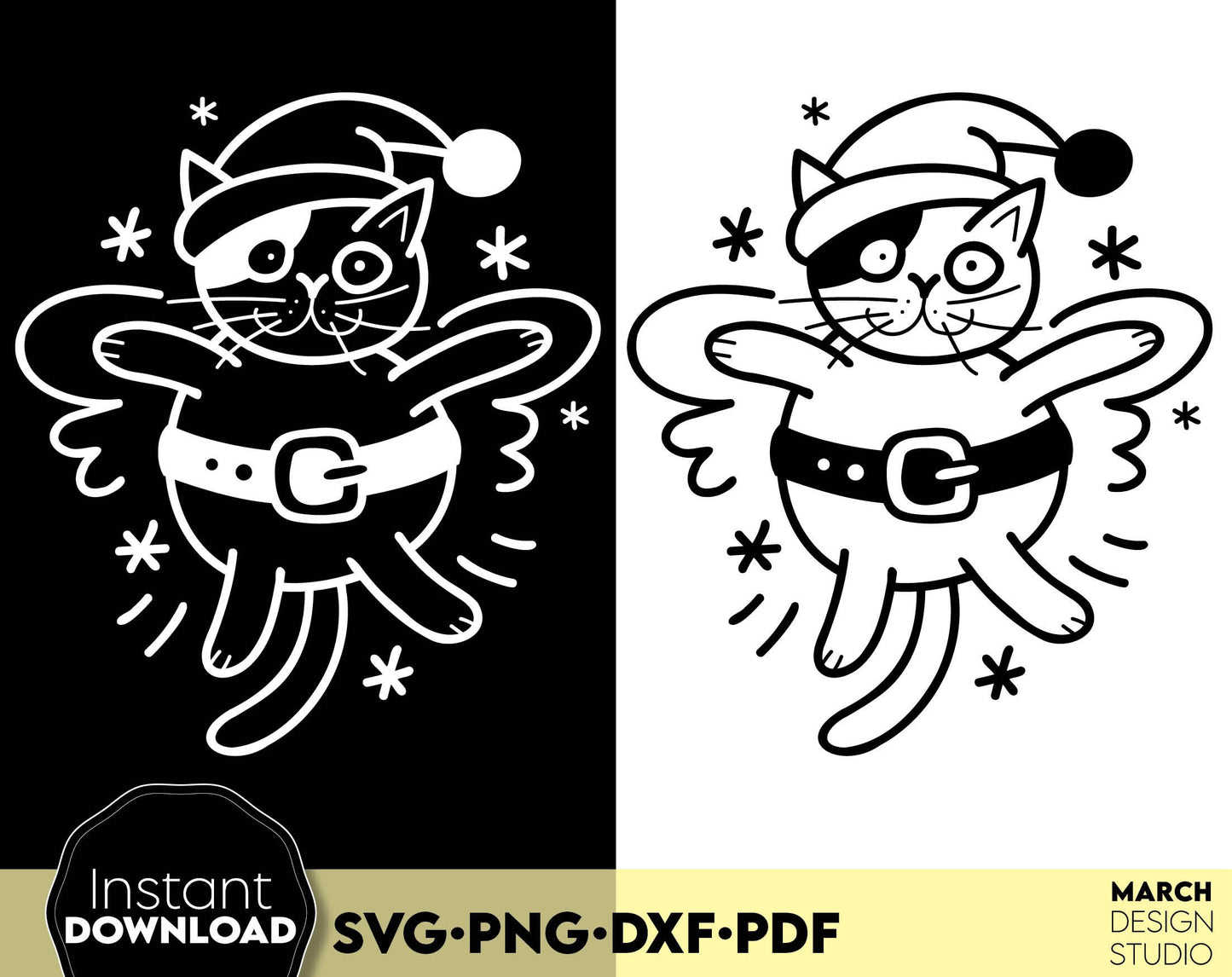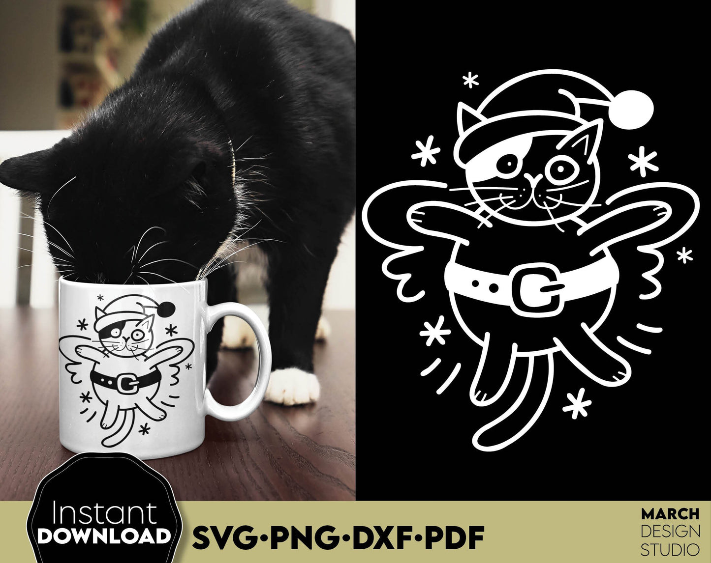 Cat snow angel svg png dxf pdf files included. Funny cat Christmas Cut Mug Design. Compatible with Cricut, Silhouette or other equipment. Cut from vinyl, use for sublimation or laser cut projects. Buy now for a good price and enjoy!