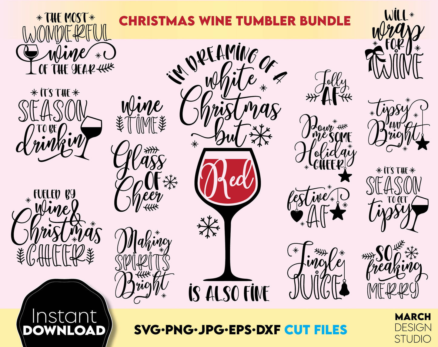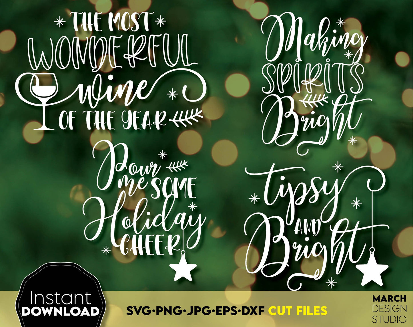 Christmas Wine Glass SVG Bundle for Your Christmas Ornaments, Gift ideas and more. Cut from vinyl with Cricut, Silhouette or Glowforge, use as laser cut files as well. Buy now and enjoy!
