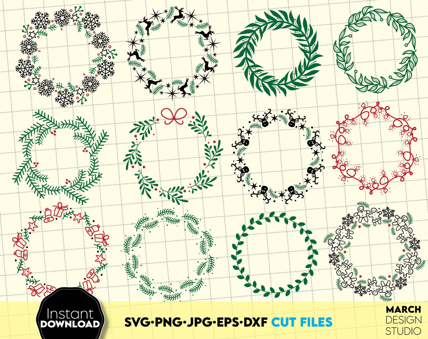 Christmas wreath SVG, PNG, JPG, EPS, DXF bundle. Compatible with Cricut, Silhouette or other machines. Cut from vinyl, use for sublimation or laser cut projects. Buy now for a good price and enjoy!