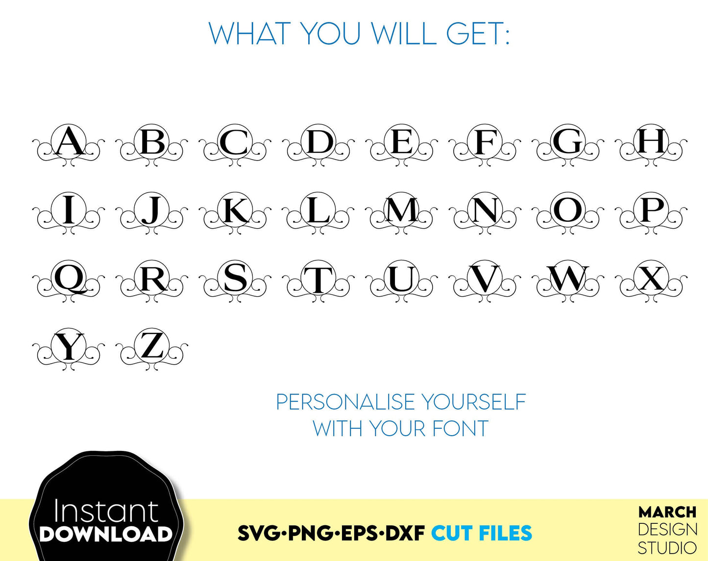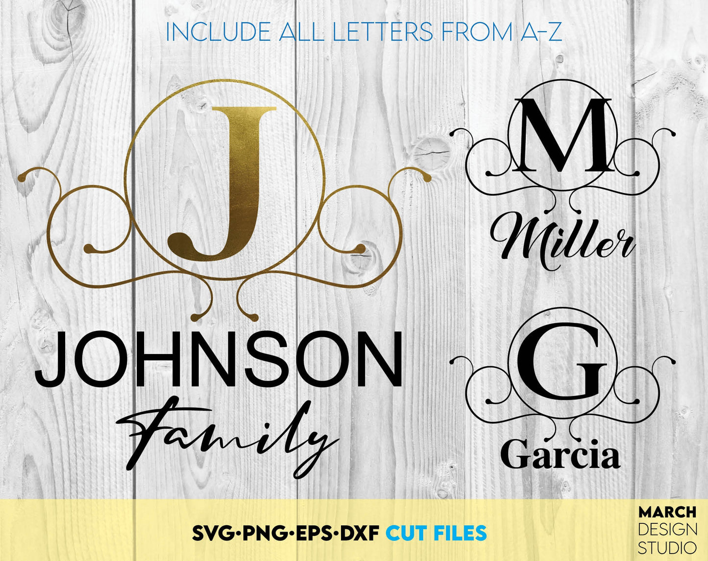 Circle Family Name Monogram, great and personalized design that can be used to create great gifts. Family monograms are useful for creating wedding gifts, family name monograms or as a personal birthday gift. Compatible with Cricut, Silhouette, Glowforge and other machines. Buy now for a good price and enjoy!