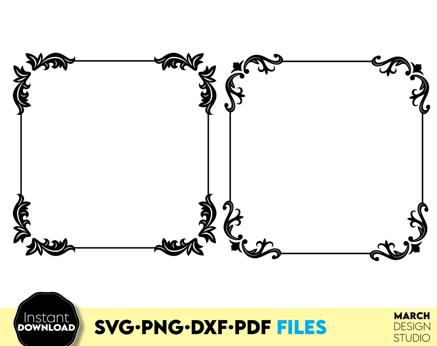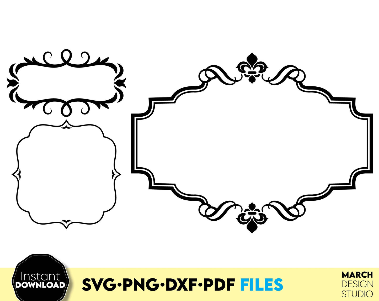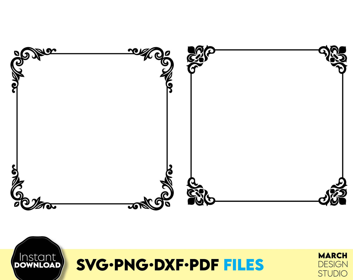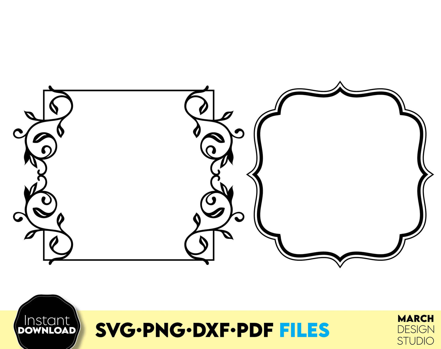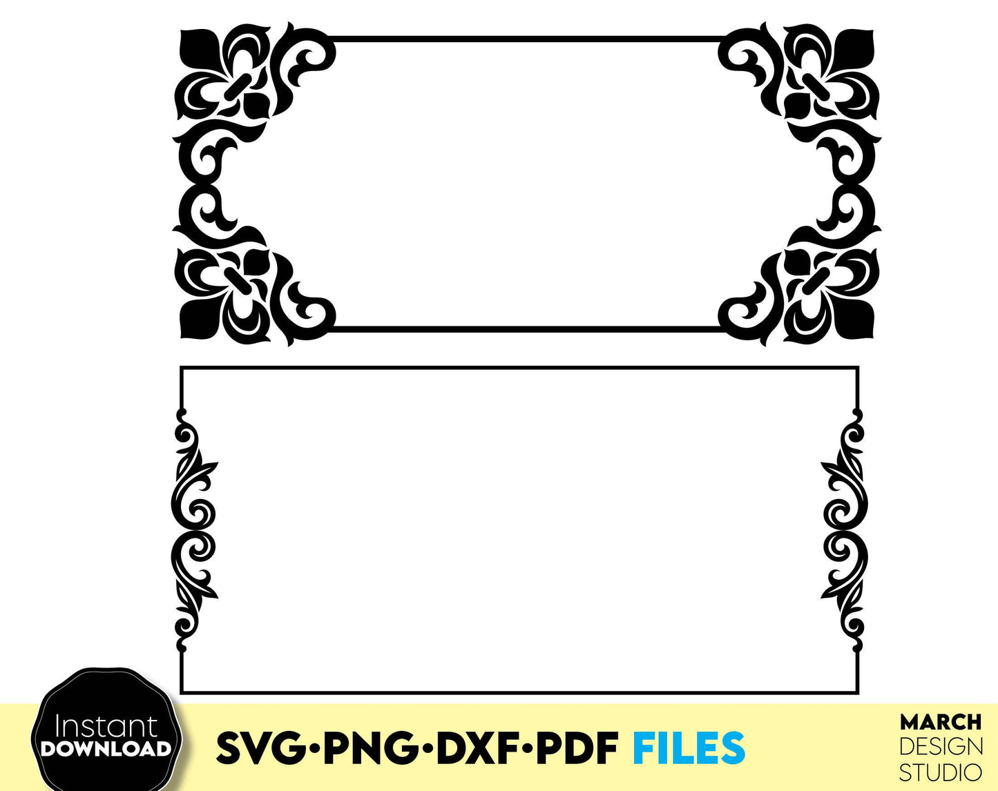 Decorative frame templates bundle for Your home improving projects. SVG PNG DXF PDF files included. Compatible with Cricut, Silhouette or other machines. Cut from vinyl, use for sublimation or laser cut or grave projects as well. Buy now and enjoy!