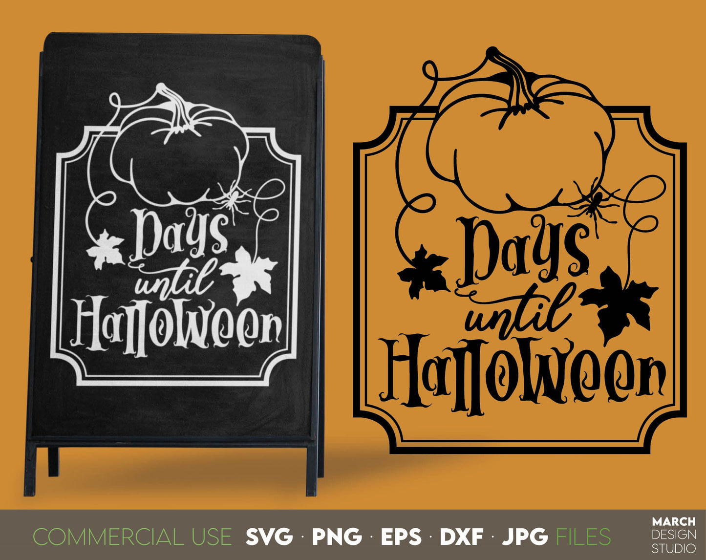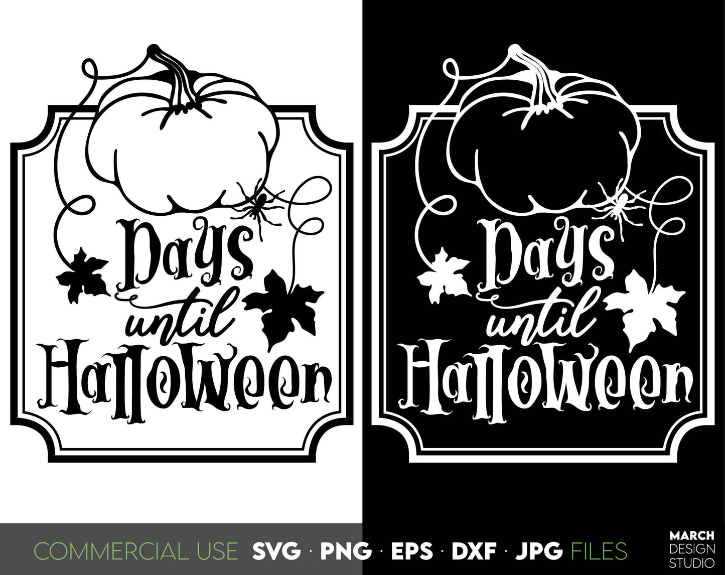Days till Halloween design for your Halloween evening project. Days until Halloween can be cute decoration for Your farmhouse. SVG, PNG, DXF, EPS, JPG file format allows this design to be used for wall decorations or front porch door decorations. Use With Cricut, Silhouette or Glowforge machines. Buy now!