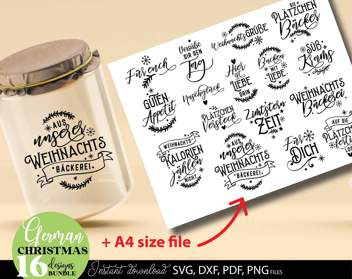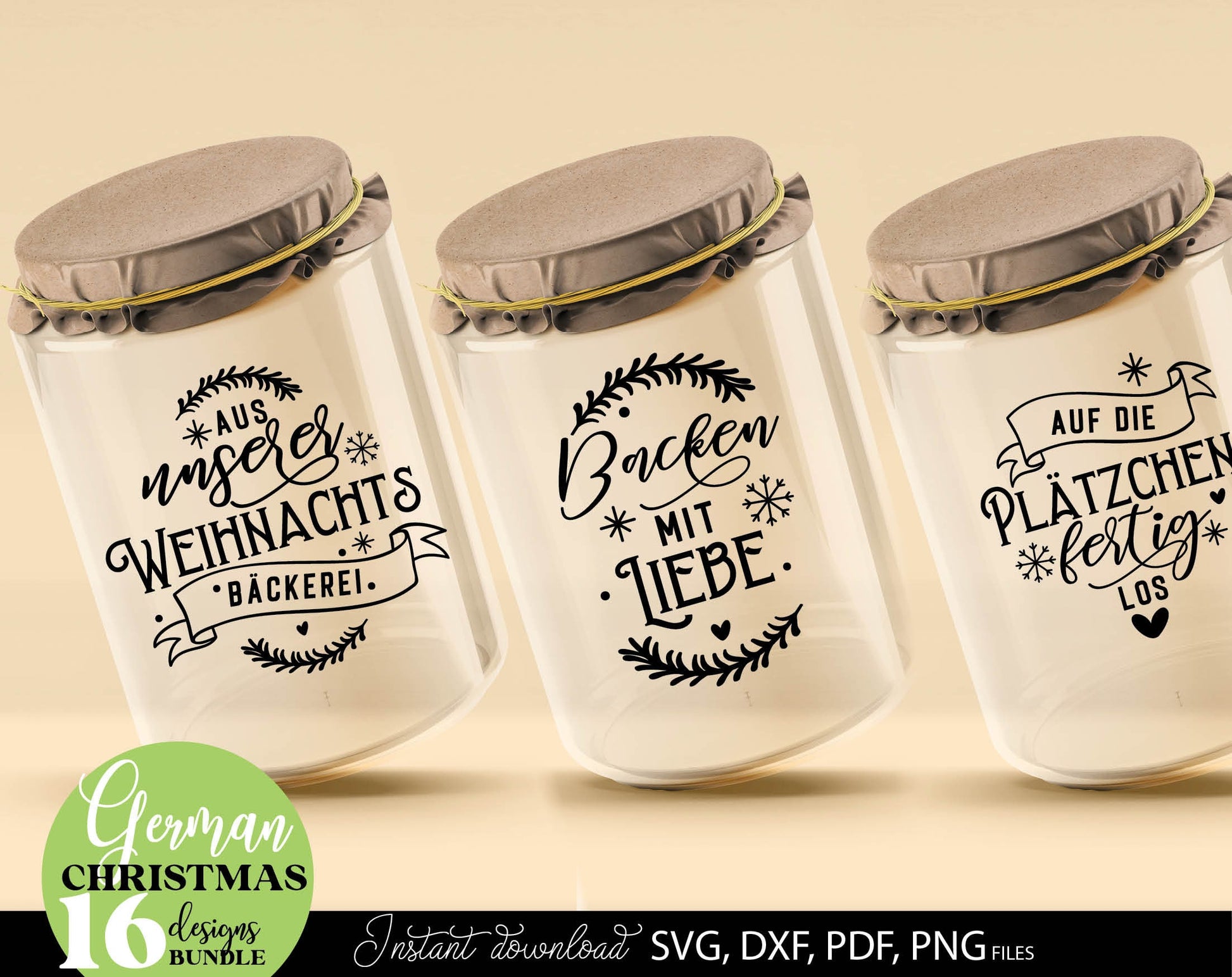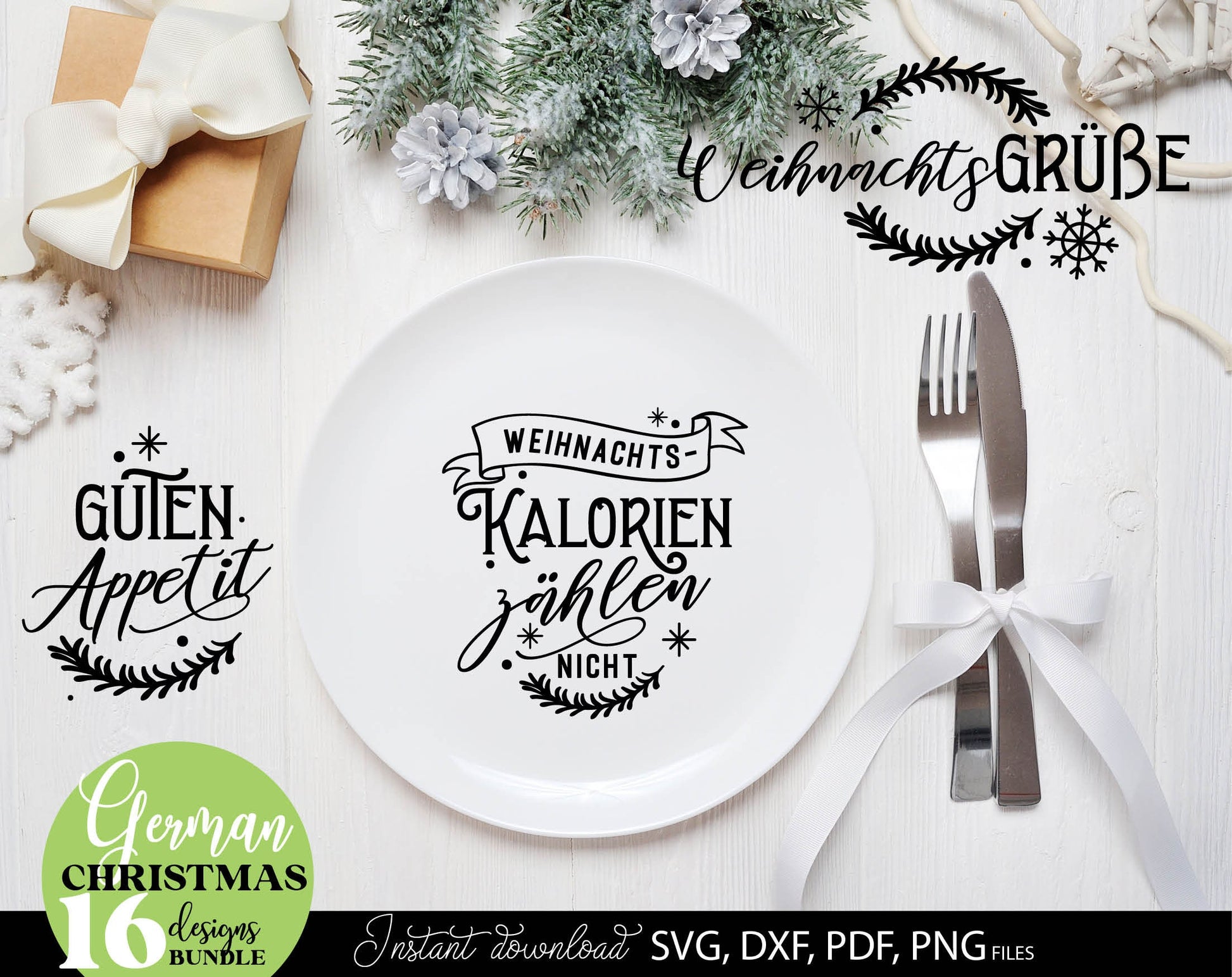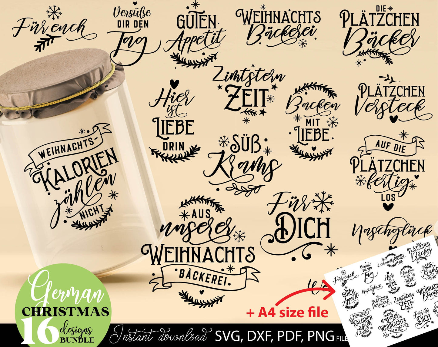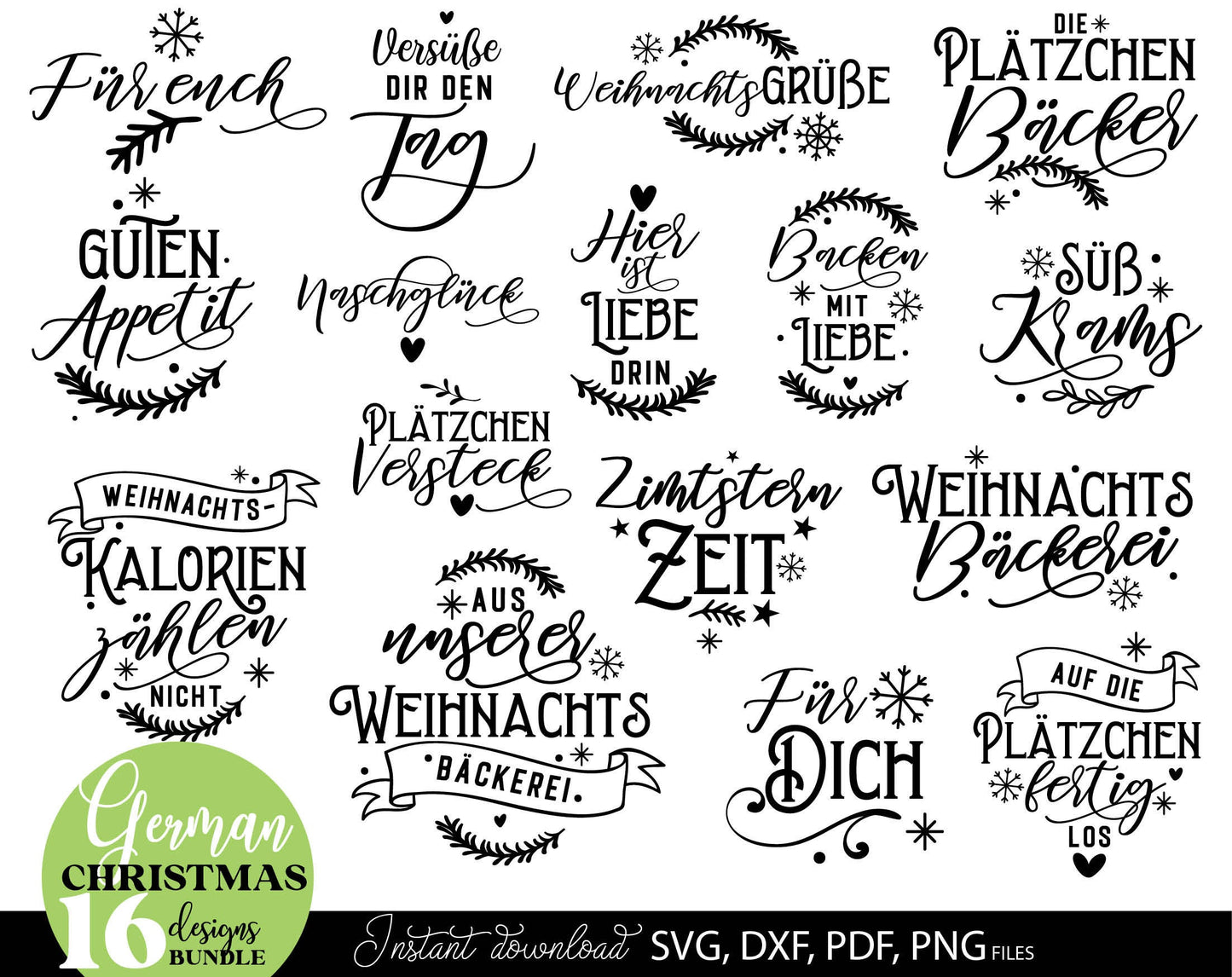 Deutsche Plotterdatei backen Weihnachten svg Bundle. SVG DXF PDF PNG files included. Compatible with Cricut, Silhouette. Use for sublimation or laser cut or grave projects. Buy now for a good price and enjoy!
