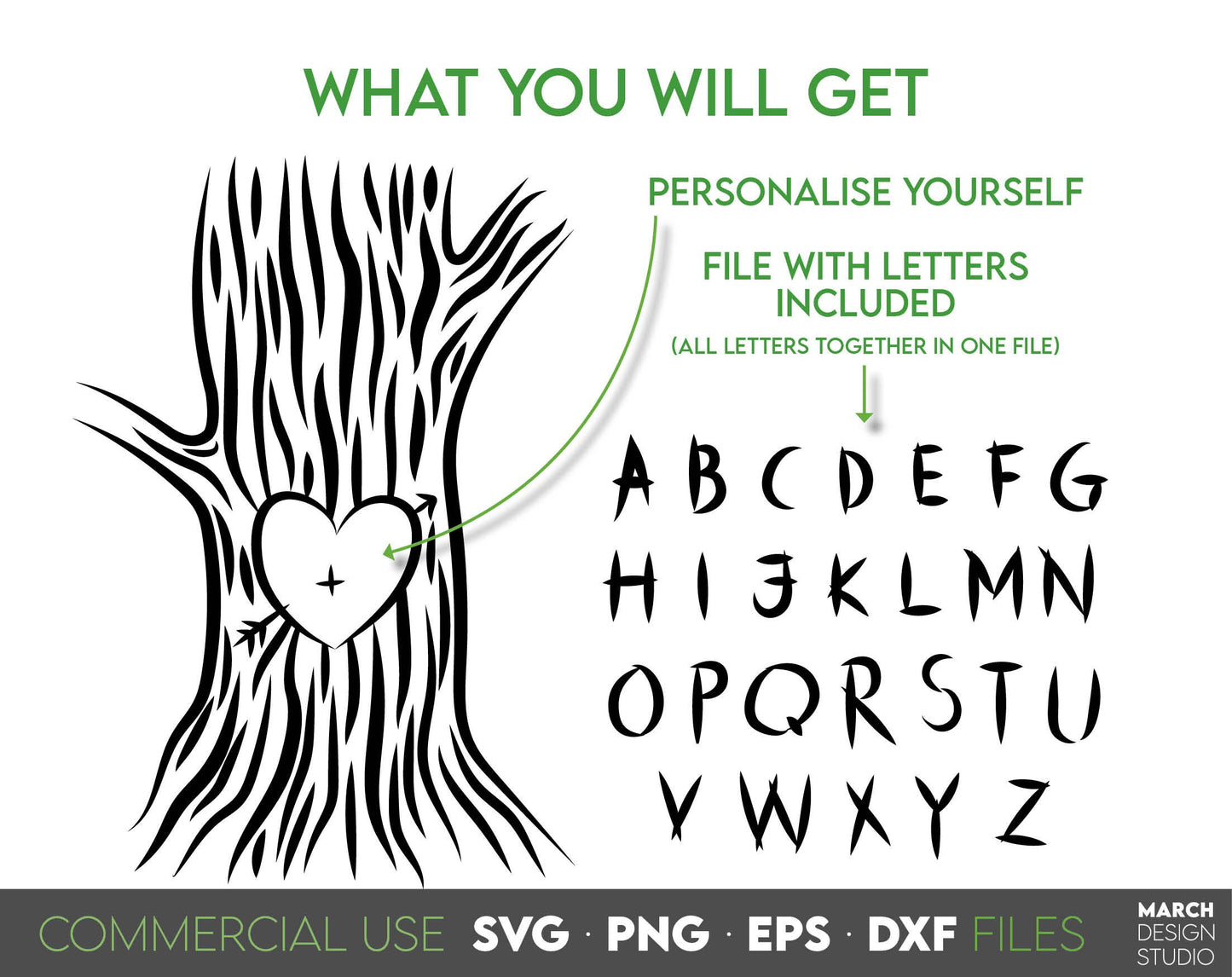 Family Tree With Initials SVG - Funny Tree Silhouette with Heart Inside SVG - Family Reunion - Wedding Sign Svg - Wedding Svg Custom Family