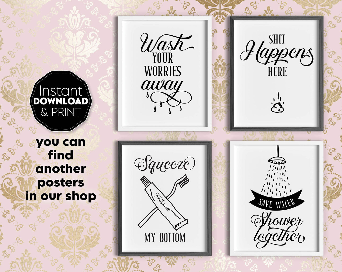 Funny Printable Wall Art For Bathroom | Wash Your Hands | Funny Bathroom Wall Decor | Bathroom Prints | Bathroom Wall Art | Digital Download
