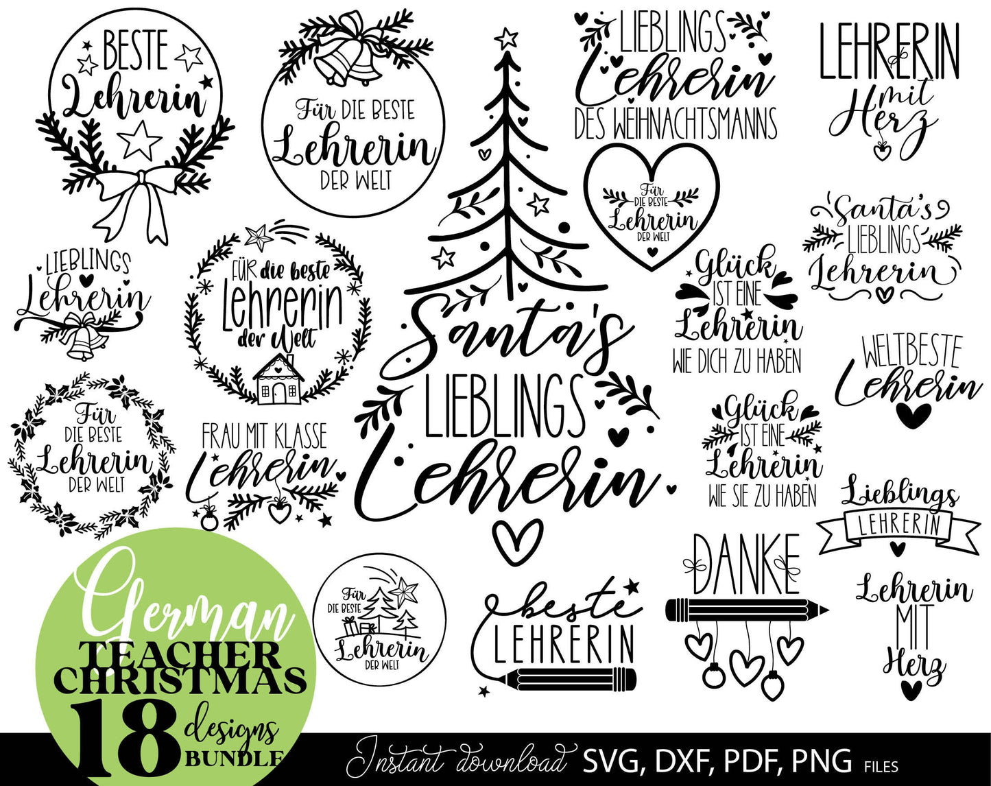 Weihnachten Plotterdatei design for Your Lehrerin Weihnachten gift ideas. SVG DXF PDF PNG files included. Compatible with Cricut, Silhouette or other equipment. Cut from vinyl, use for sublimation or laser cut or grave projects!