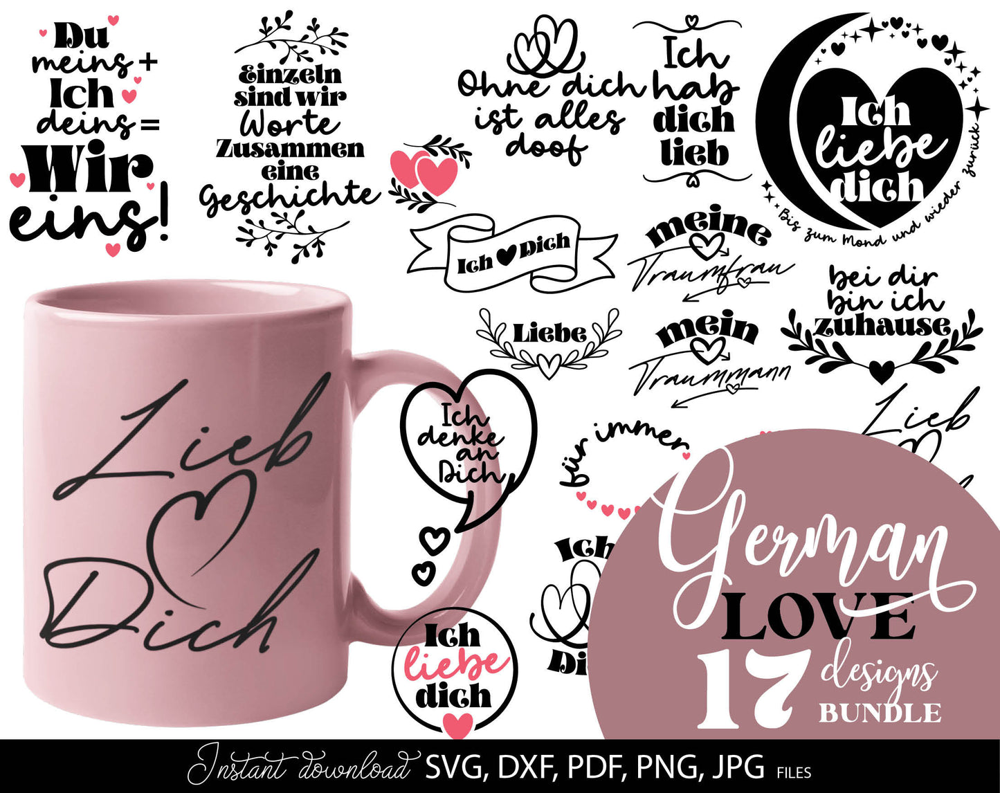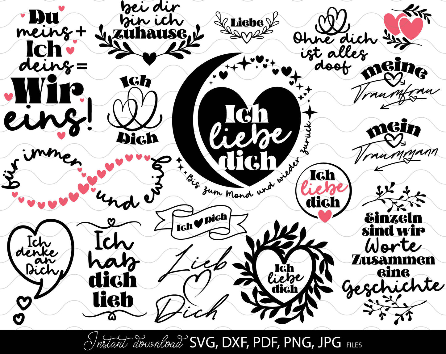 German Liebe Quotes Plotter File SVG PNG DXF | Liebling Heart Svg | Cricut Silhouette Plotting Bundle Clipart Liebe Ich Mag Dich Liebling