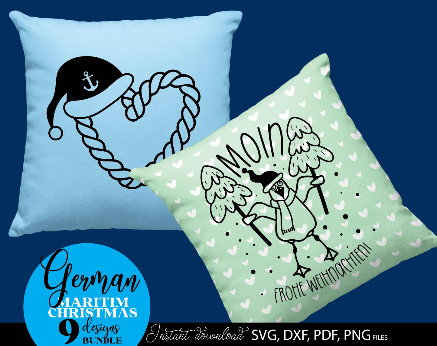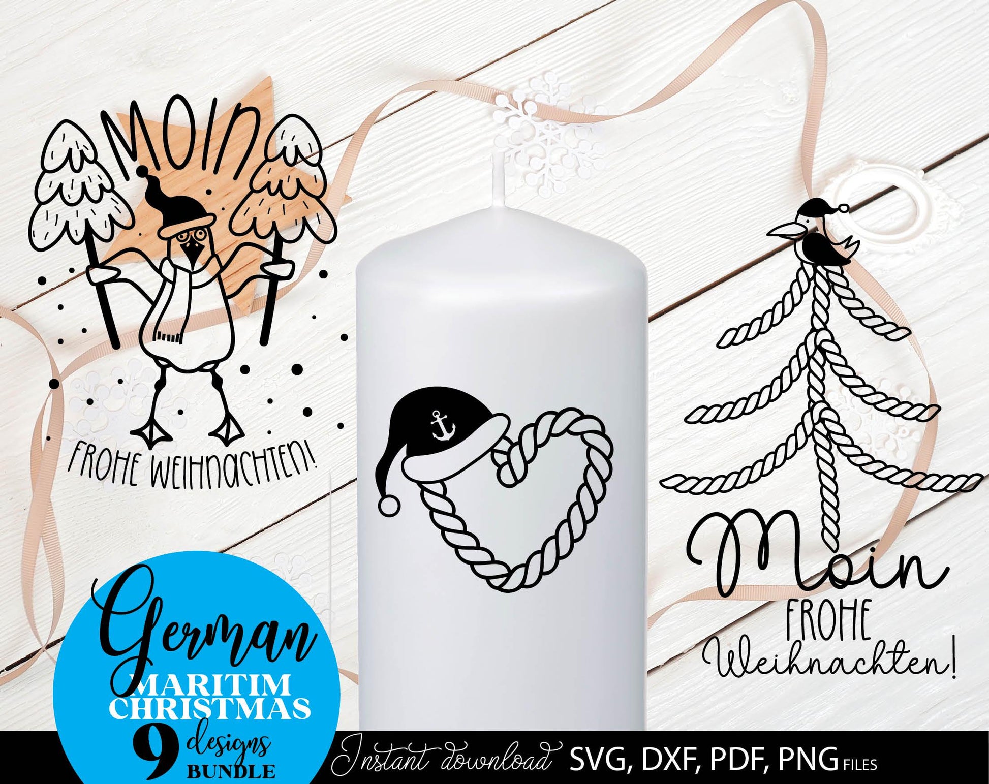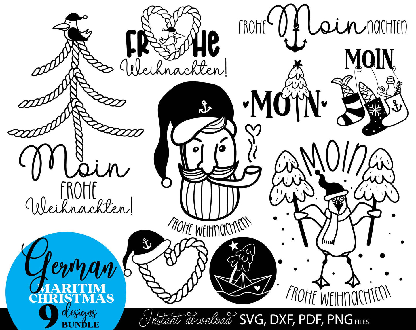 German Maritim Christmas designs bundle. SVG DXF PDF PNG files included. Compatible with Cricut, Silhouette or other equipment. Cut from vinyl, use for sublimation or laser cut or grave projects. Buy now for a good price and enjoy!