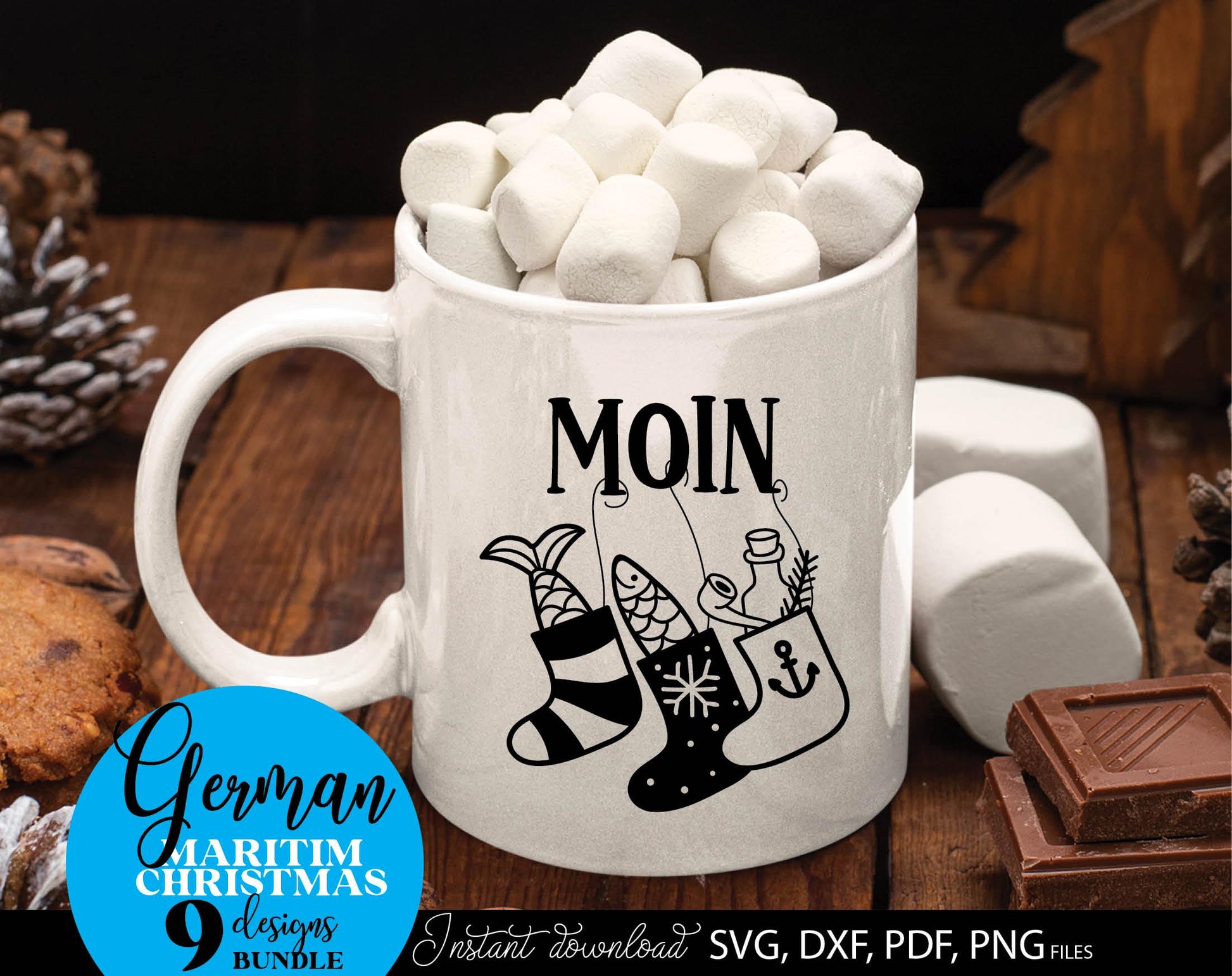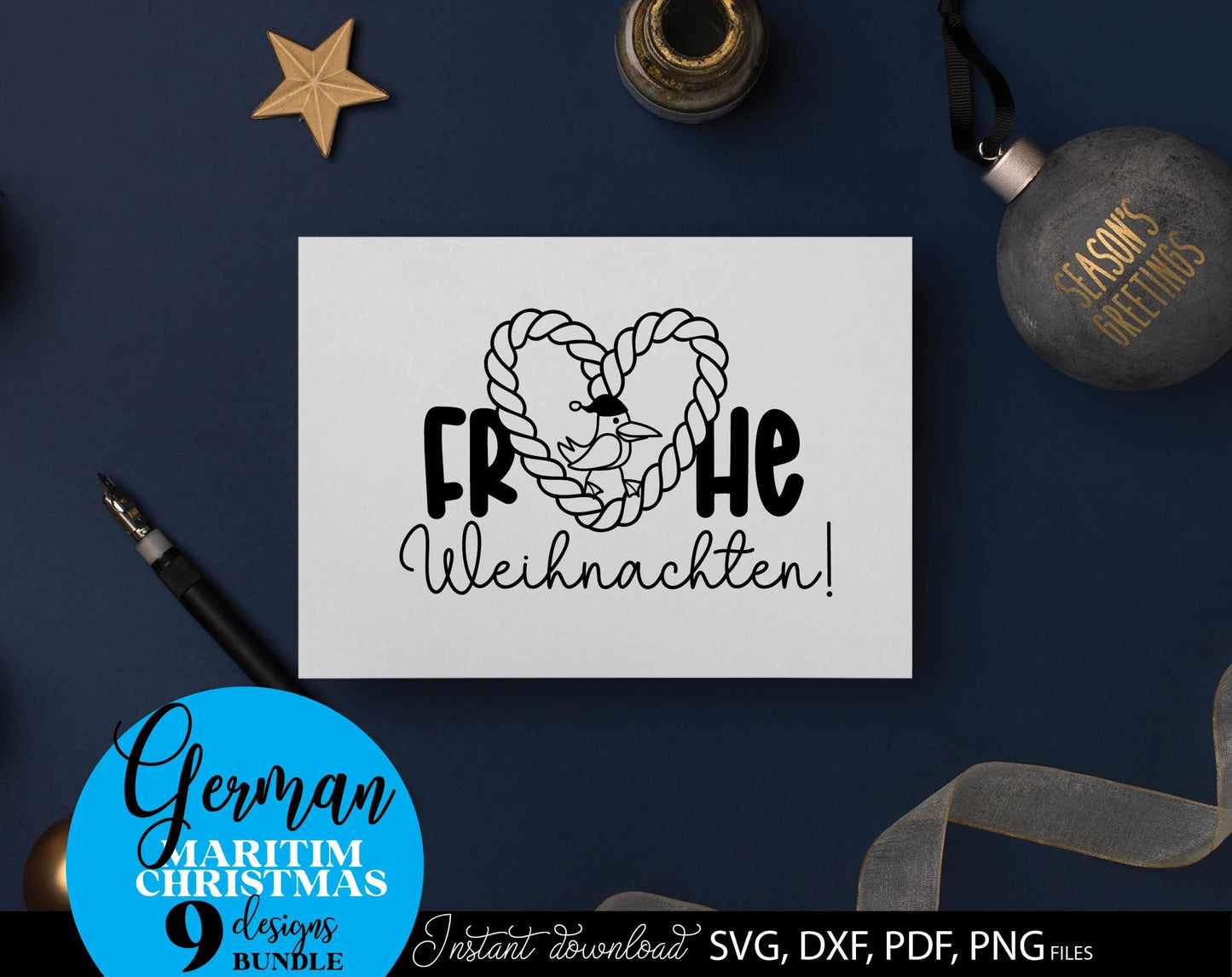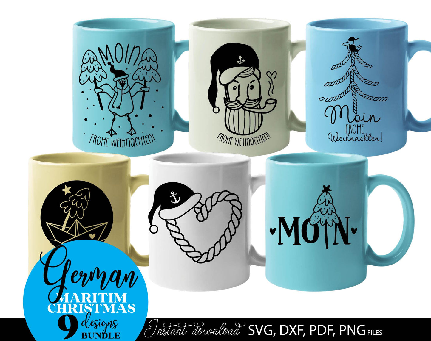 German Maritim Christmas designs bundle. SVG DXF PDF PNG files included. Compatible with Cricut, Silhouette or other equipment. Cut from vinyl, use for sublimation or laser cut or grave projects. Buy now for a good price and enjoy!