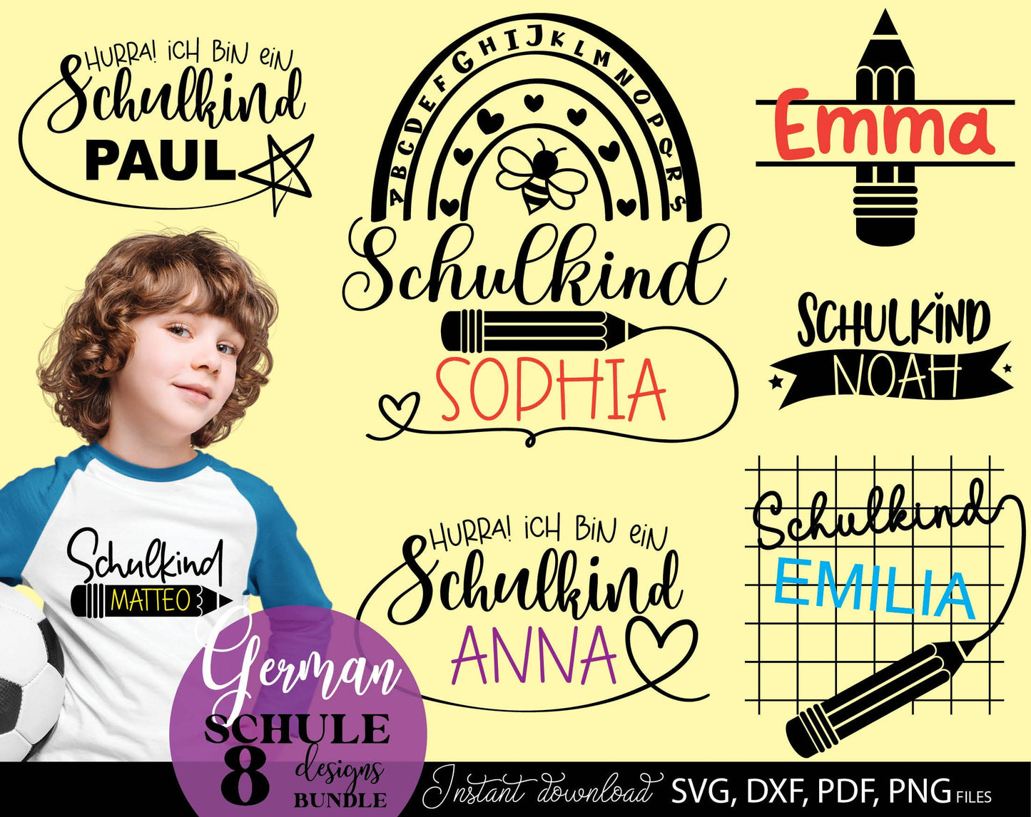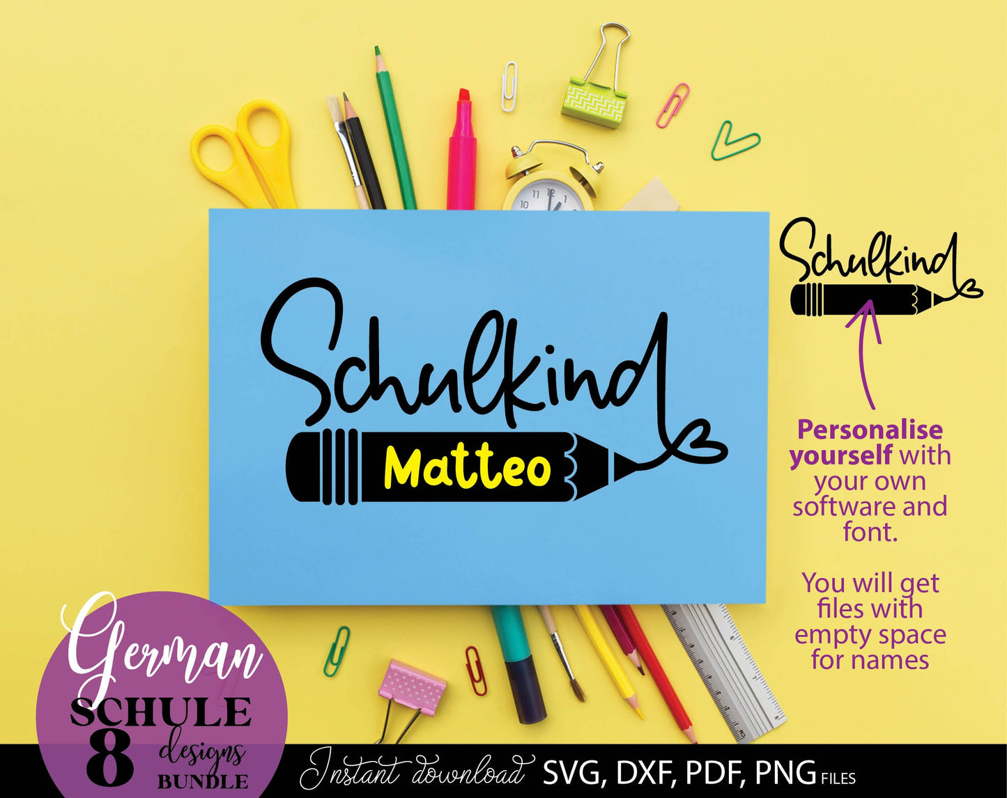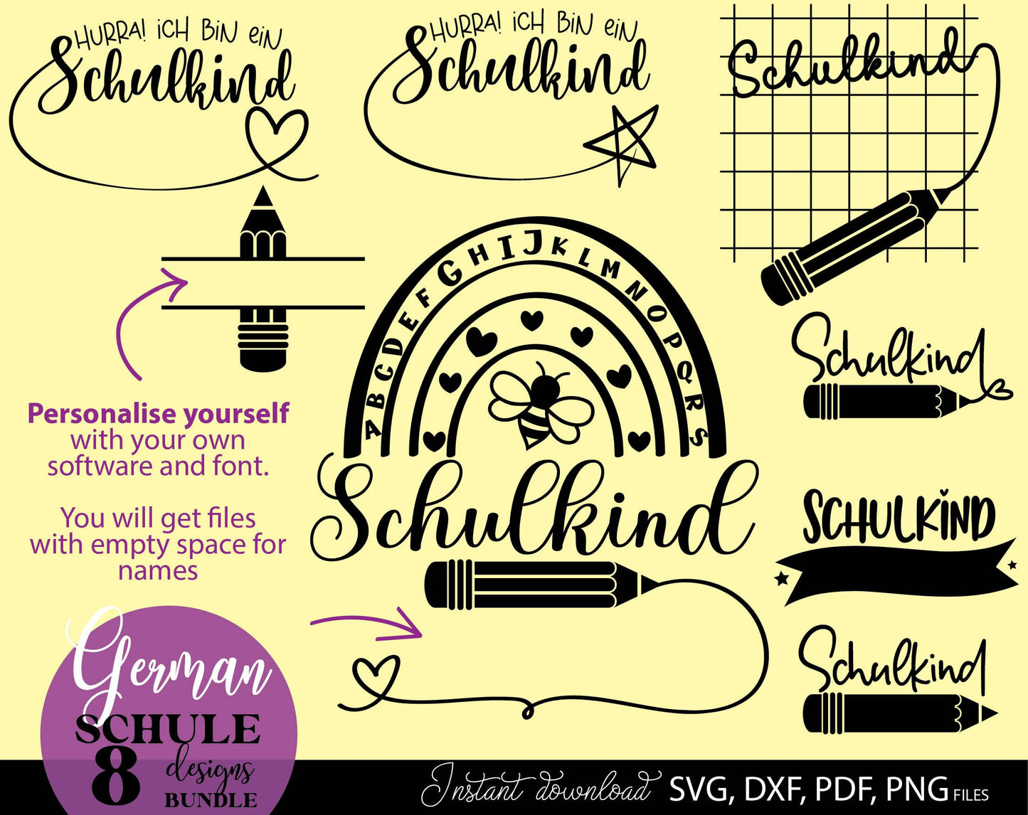 German Schulkind Plotter File SVG Bundle Great design for shirts, cups, etc. for teachers and students. SVG, DXF, EPS, PNG Files compatible with cutting, engraving and laser cutting machines.