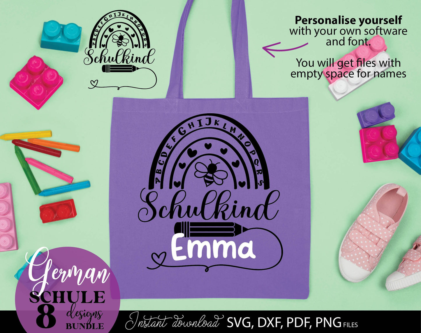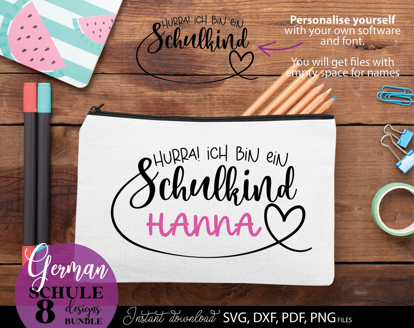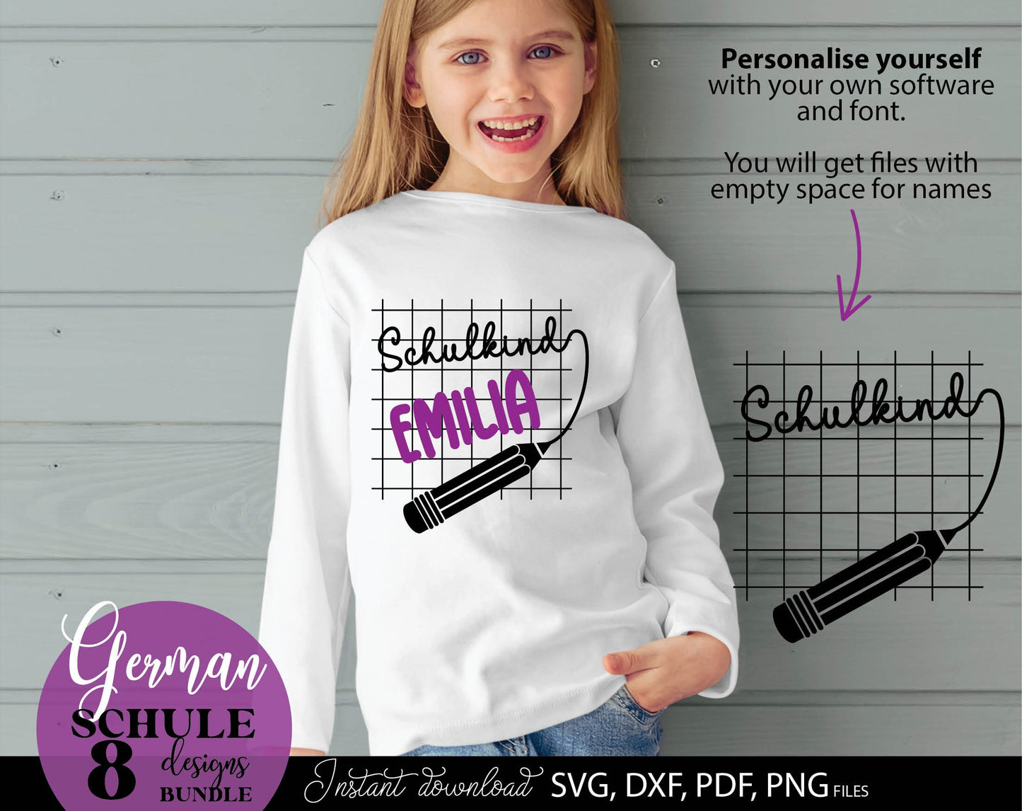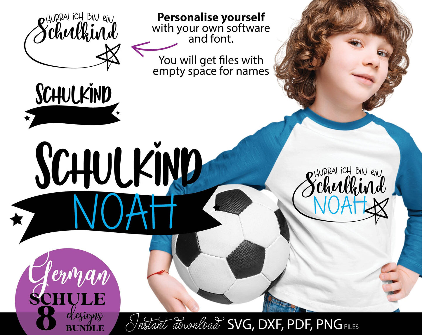 German Schulkind Plotter File SVG Bundle Great design for shirts, cups, etc. for teachers and students. SVG, DXF, EPS, PNG Files compatible with cutting, engraving and laser cutting machines.