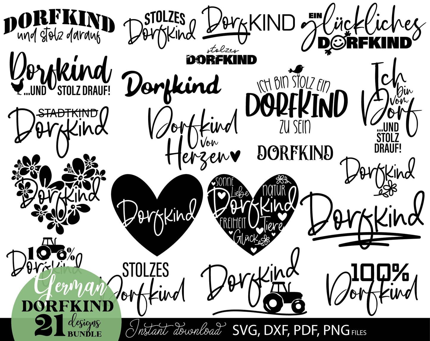 German Dorfkind Plotter file bundle. SVG DXF PDF PNG files included. Compatible with Cricut, Silhouette, sublimation printers or other equipment. Cut from vinyl, use for sublimation or laser cut or grave projects. Buy now for a good price and enjoy!