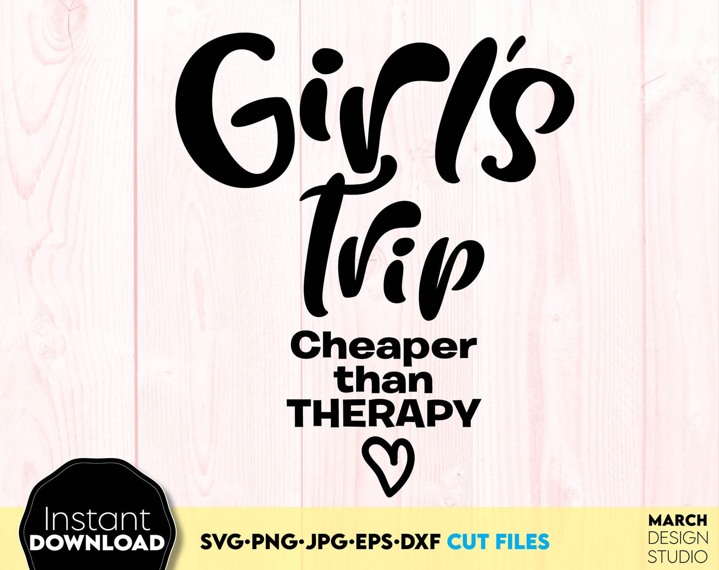 Girls Trip Cheaper than therapy matching shirts design. SVG, PNG, JPG, EPS and DXF files included. Compatible with Cricut, Silhouette and others machines. Use for sublimation or laser cut projects as well. Buy now for a good - discount price. Enjoy!