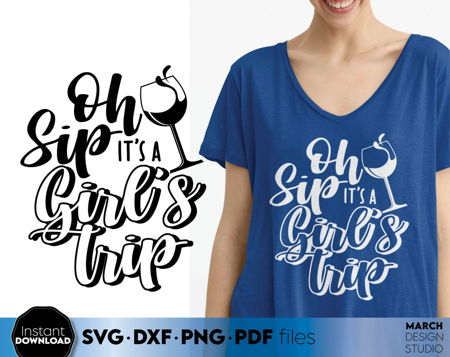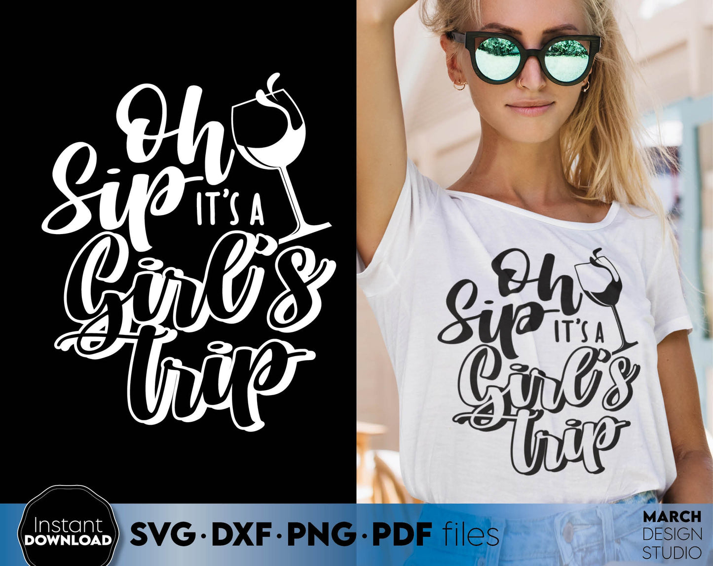 Oh Sip It is a girls trip. SVG DXF PNG PDF files included. Compatible with Cricut, Silhouette, sublimation printer or laser cut or grave machines. Cut from vinyl, sublimation or laser cut or grave projects. Buy now for a good price and enjoy!
