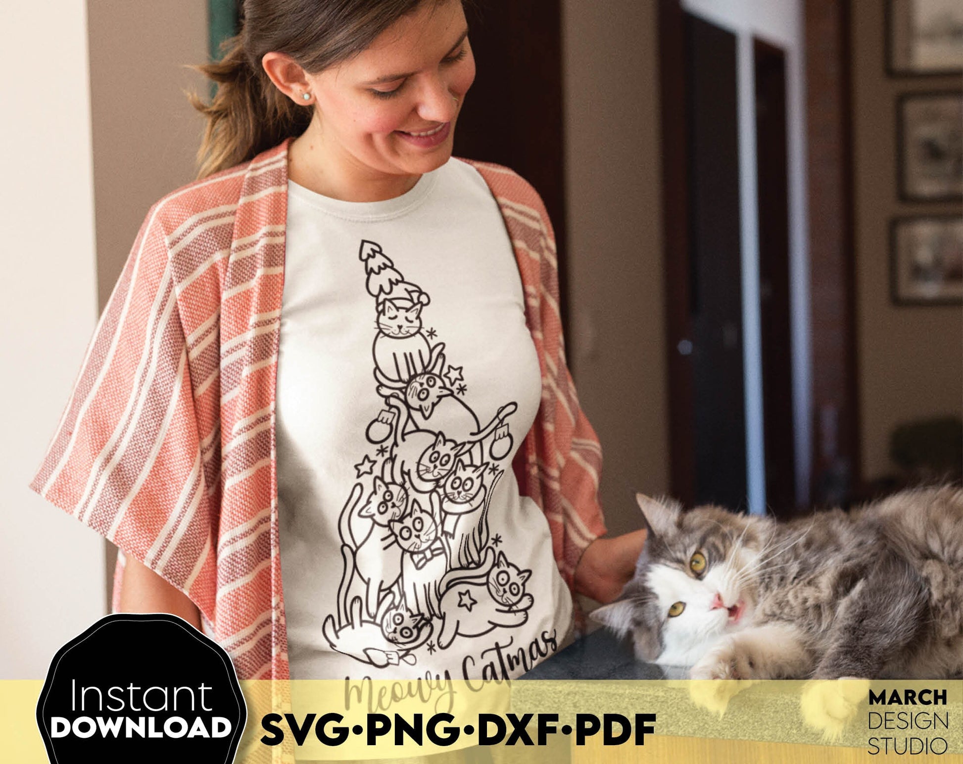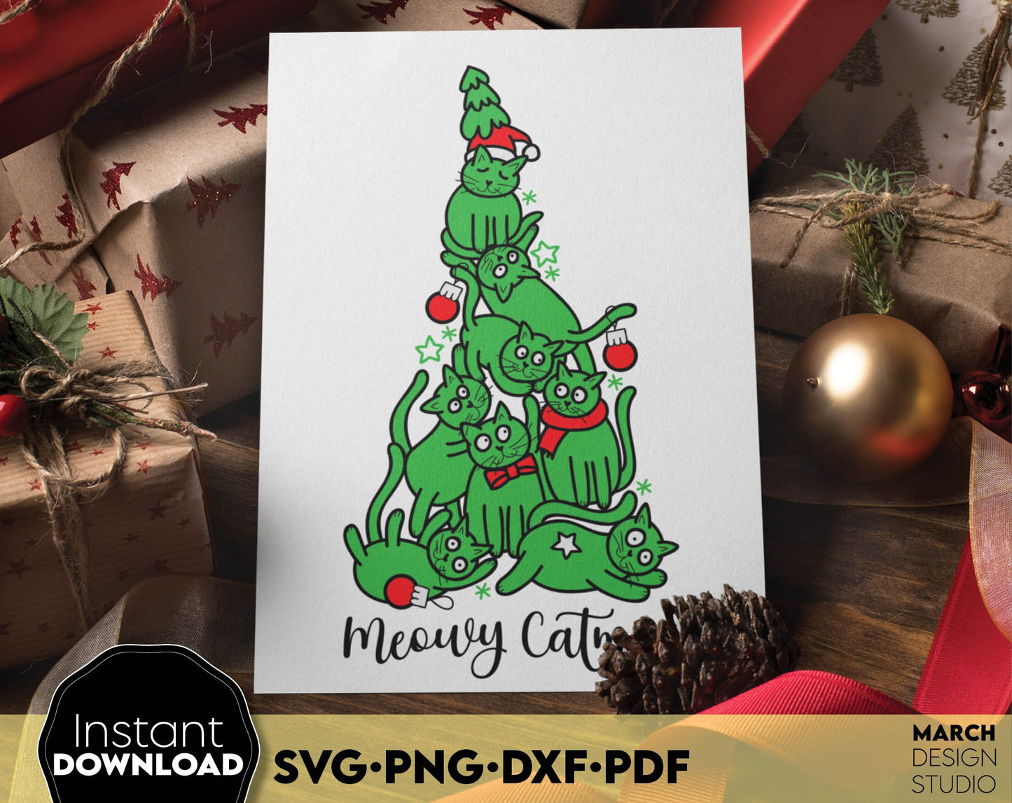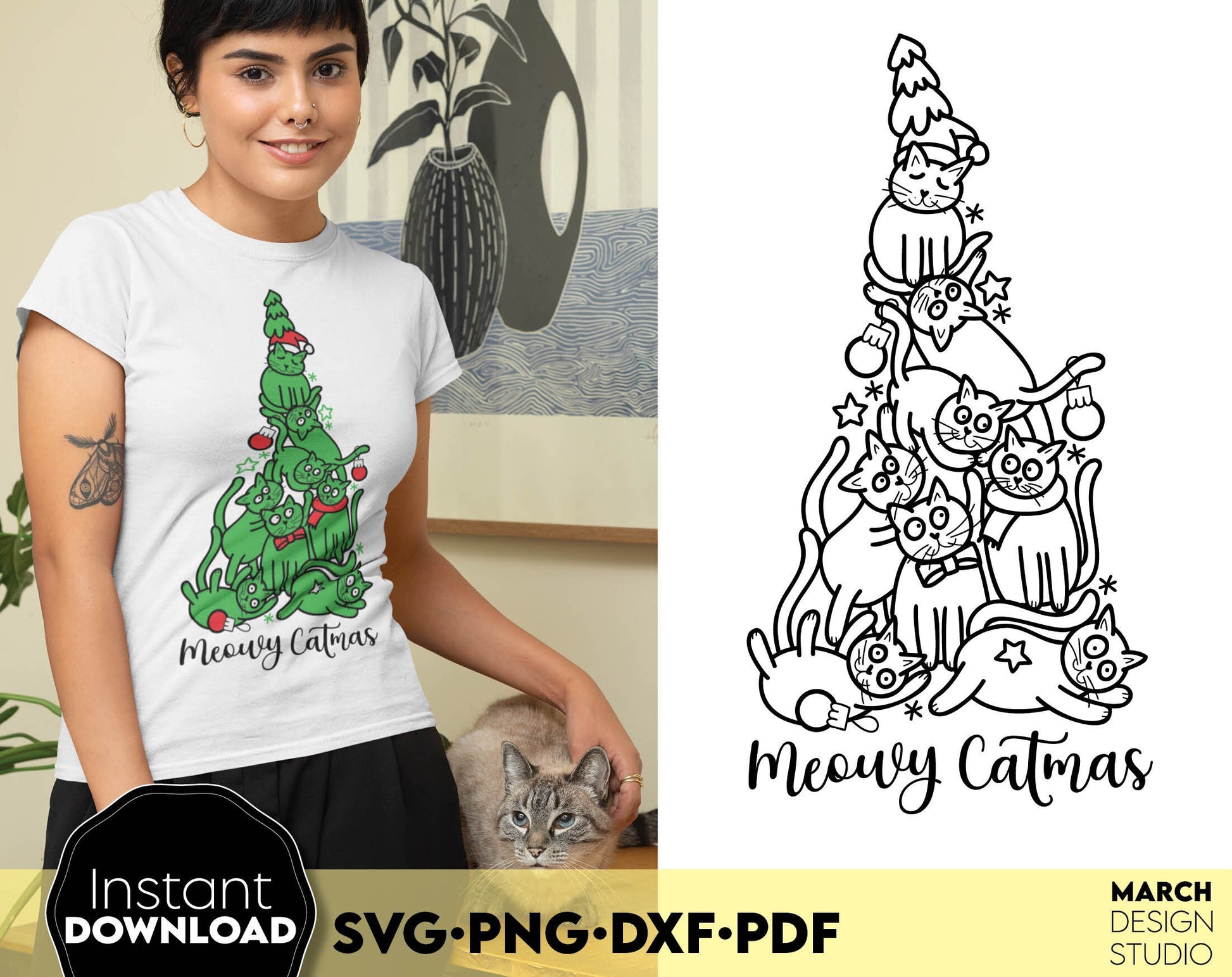 Merry Catmas design Gift for Cat Mom SVG PNG DXF PDF. Compatible with Cricut, Silhouette or other machines. Use for cutting from vinyl, sublimation or laser cut projects. Buy now for a good price and enjoy!