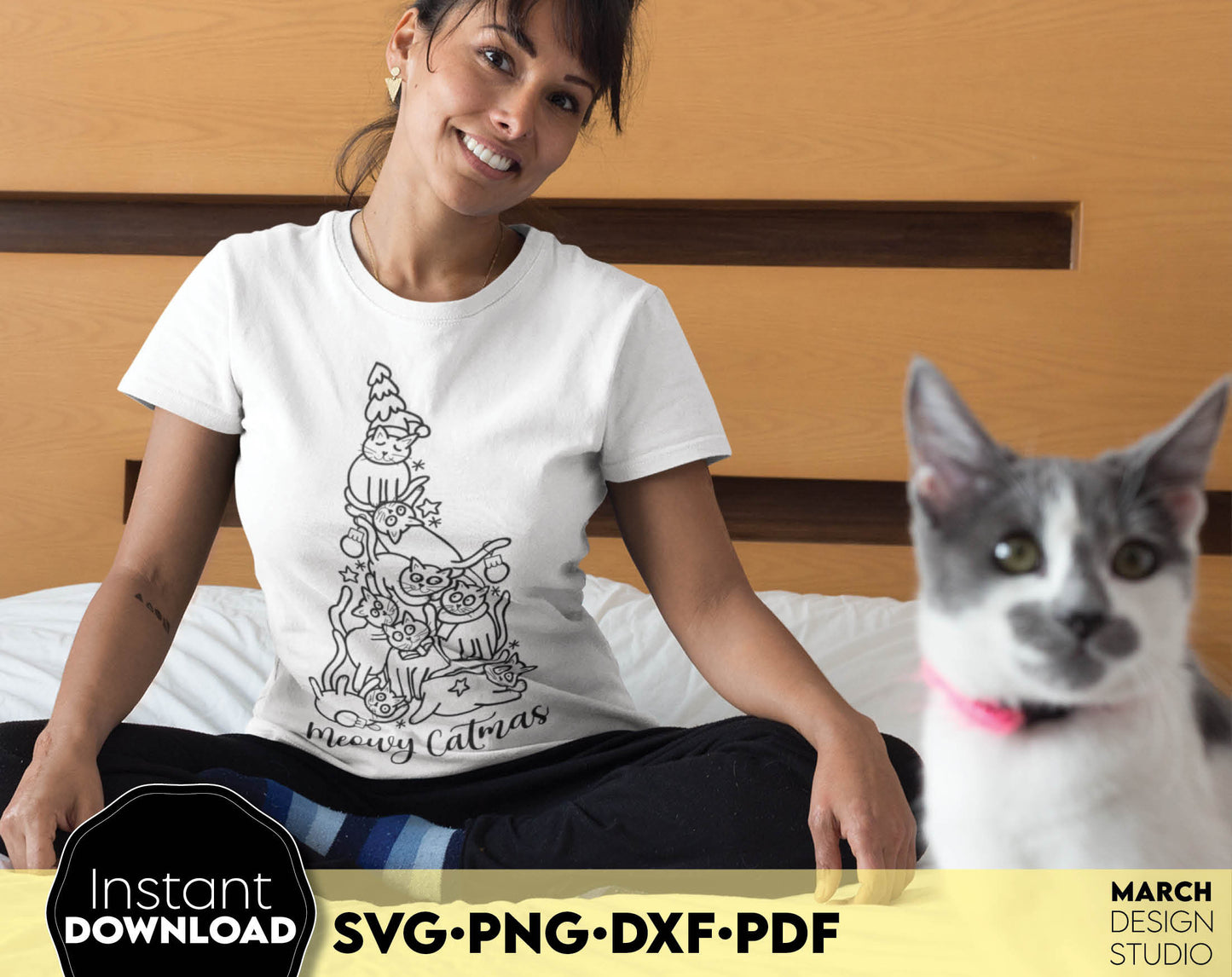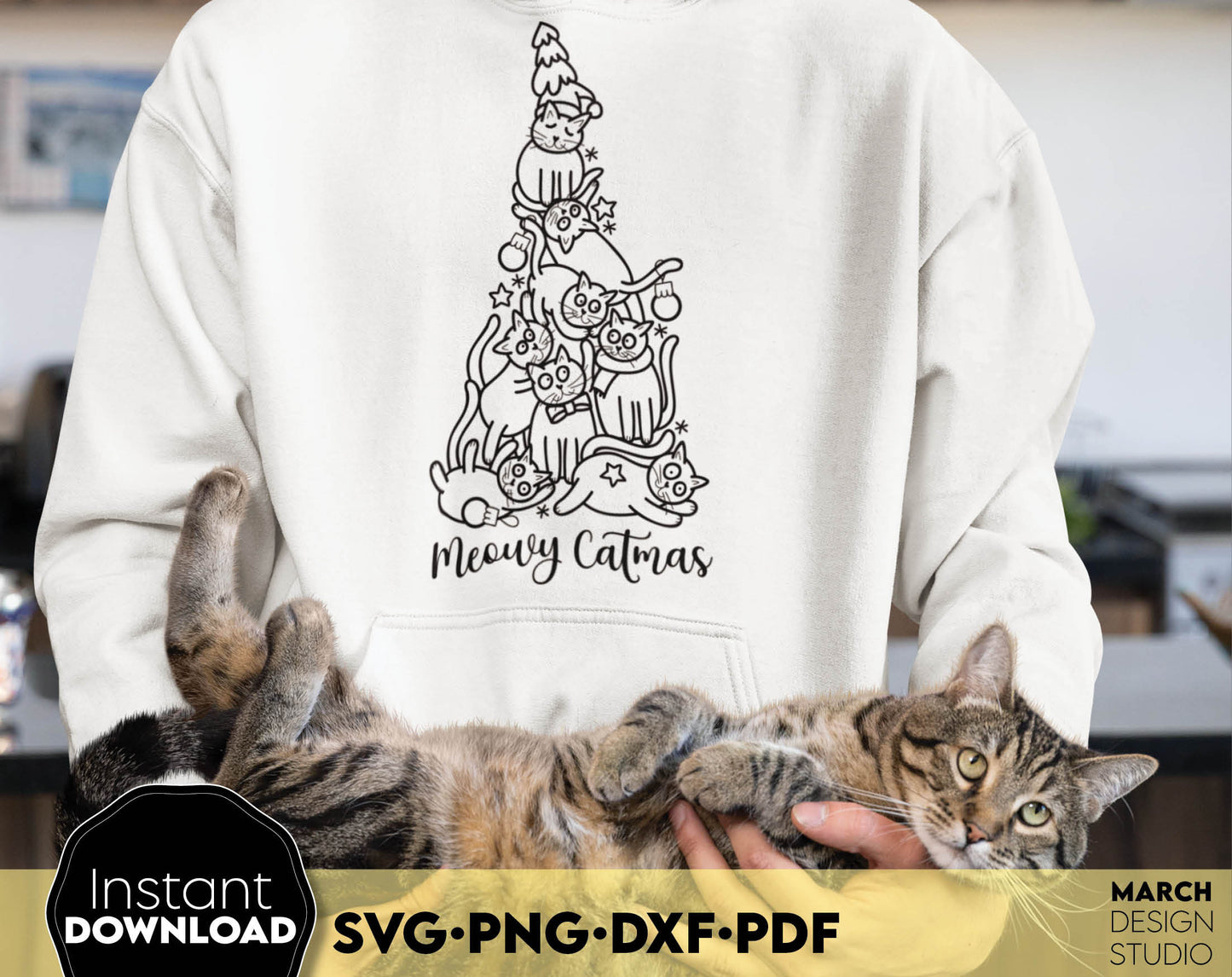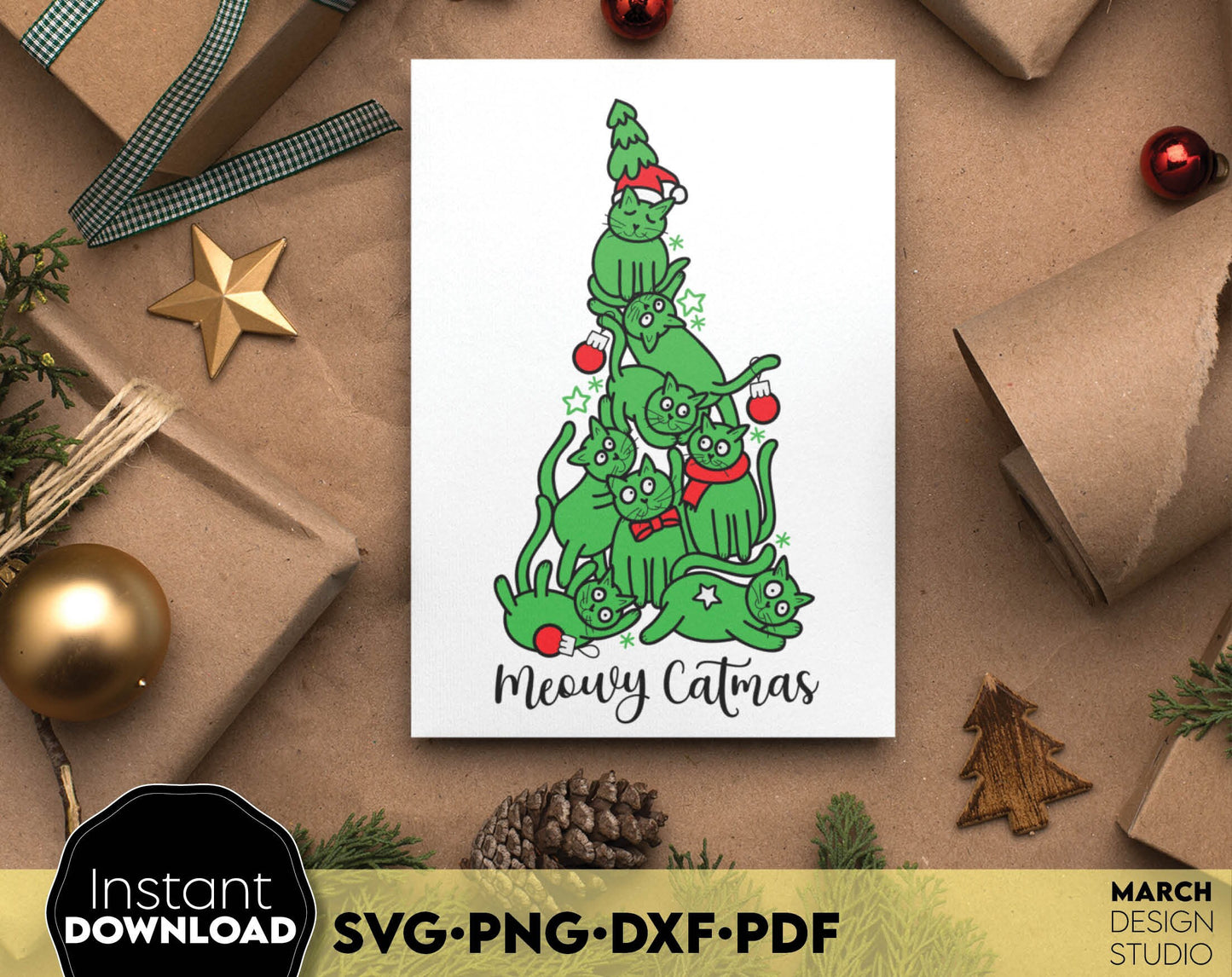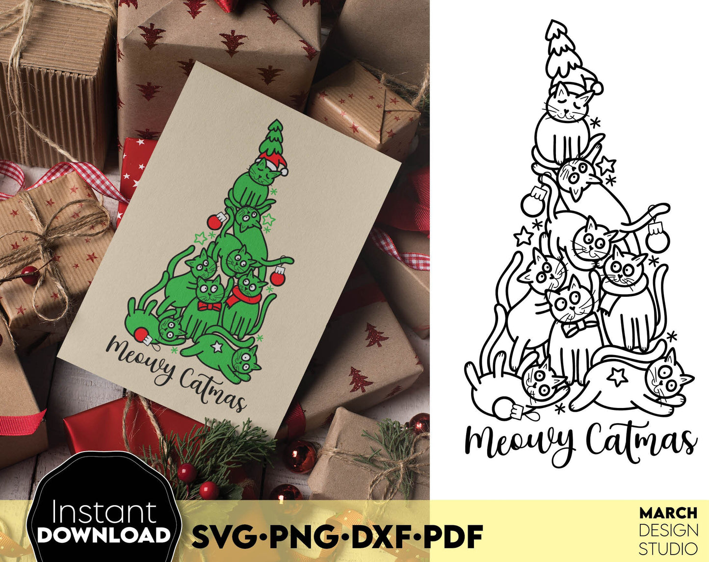 Merry Catmas design Gift for Cat Mom SVG PNG DXF PDF. Compatible with Cricut, Silhouette or other machines. Use for cutting from vinyl, sublimation or laser cut projects. Buy now for a good price and enjoy!