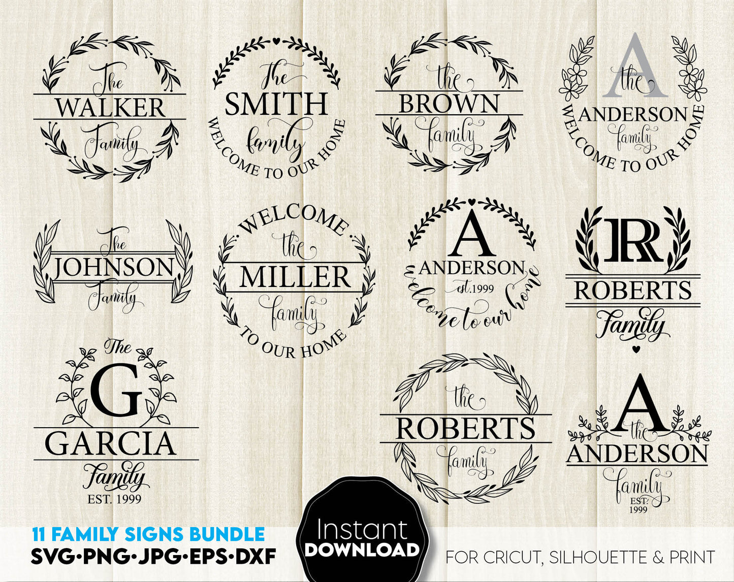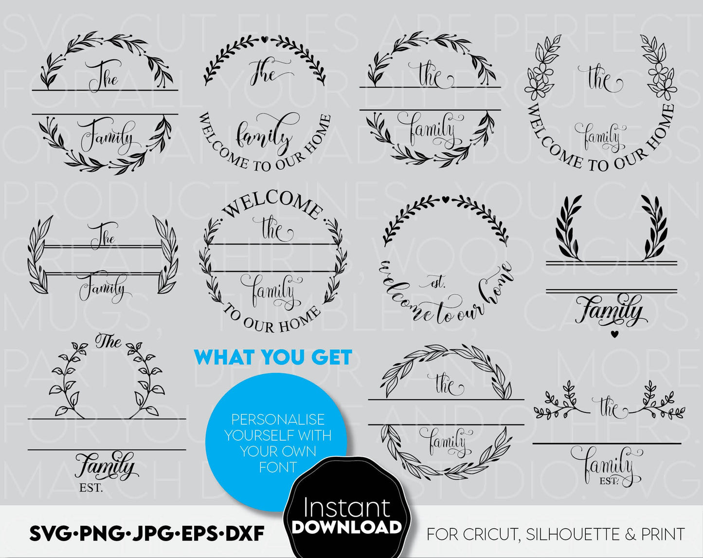 Files allow you to use designs for engraving on glass, making shirts, tumblers with Cricut, Silhouette equipment. Monogram files also designed and easy to use for laser cutting.