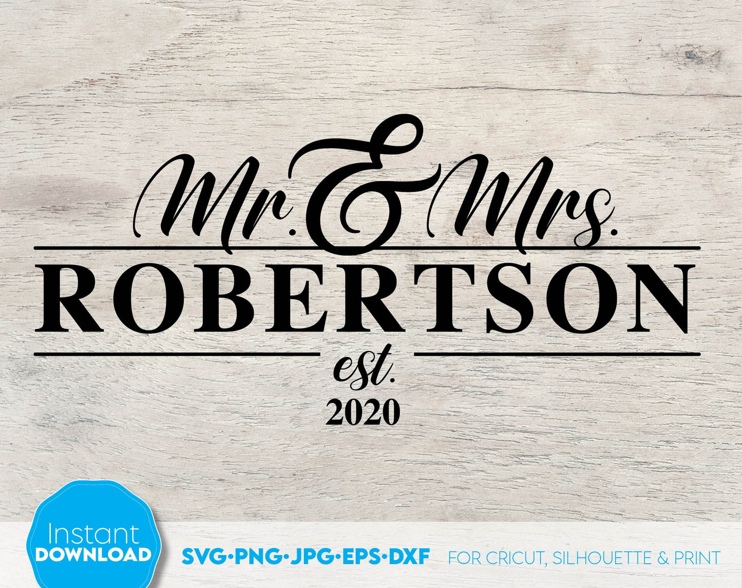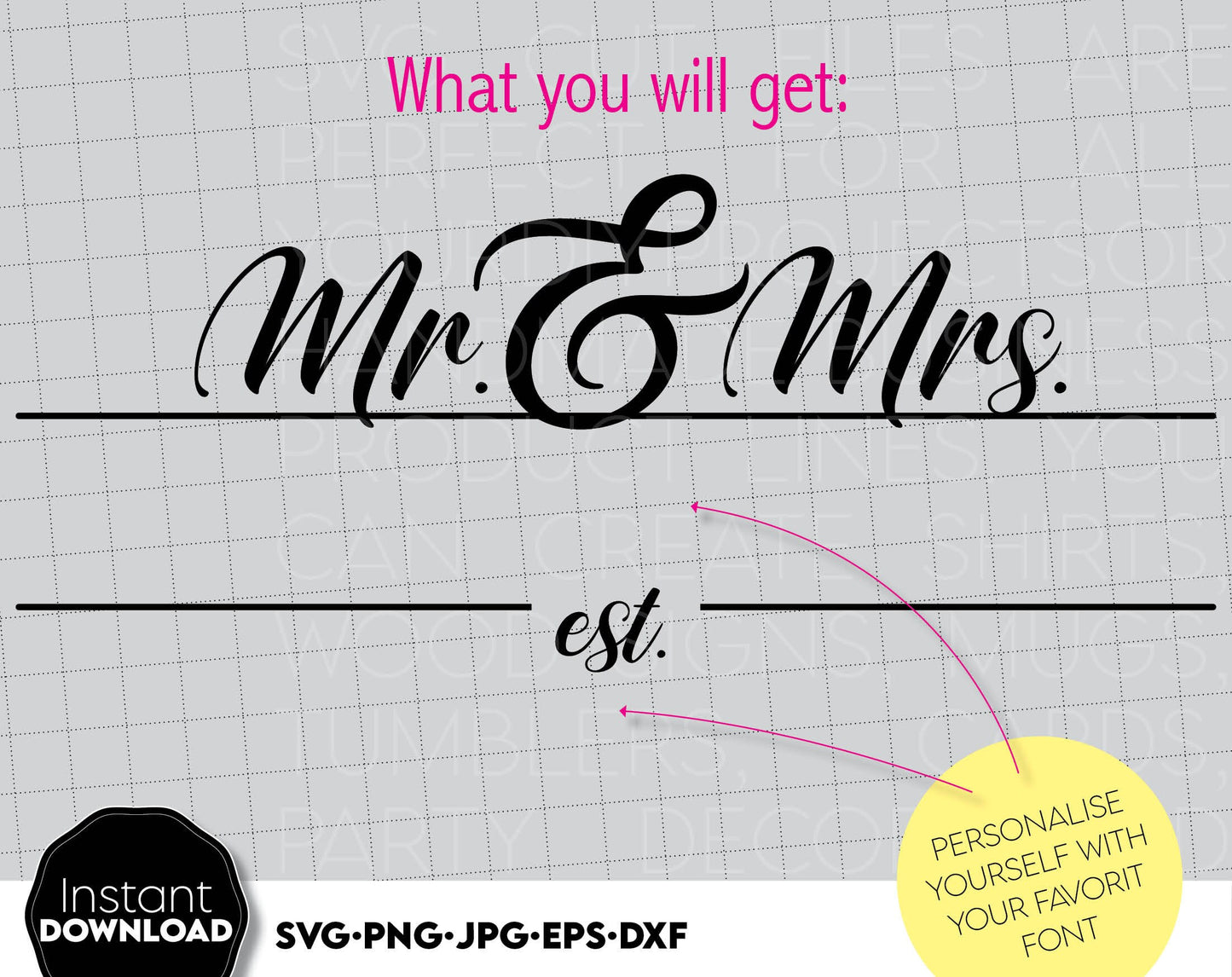Mr. and Mrs. wedding last name split sign for Your wedding, wedding anniversary or other event. SVG PNG JPG EPS DXF files included. Compatible with Cricut, Silhouette or other equipment. Cut from vinyl, sublimation or laser cut or grave projects!
