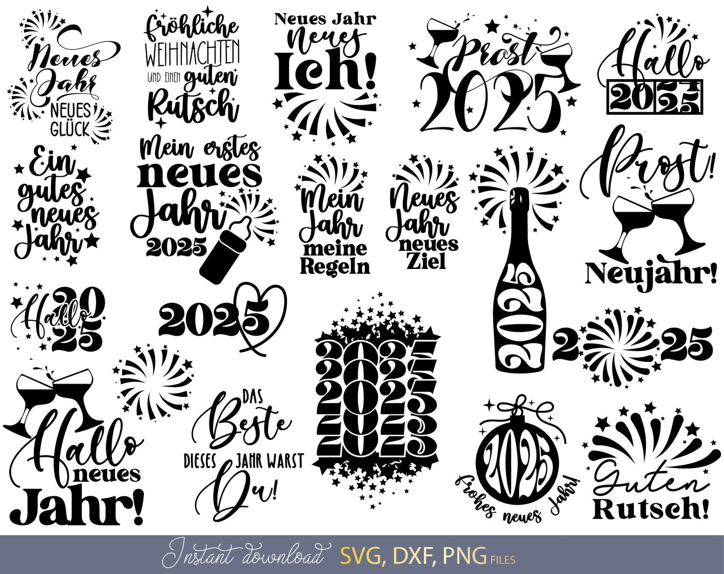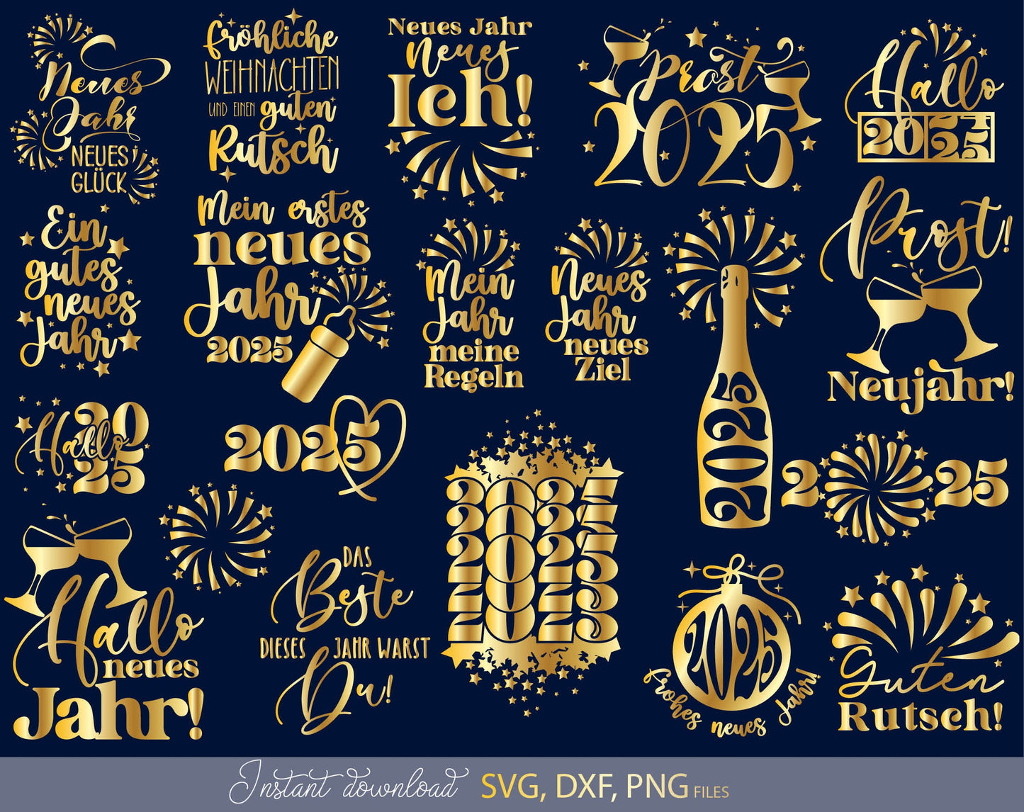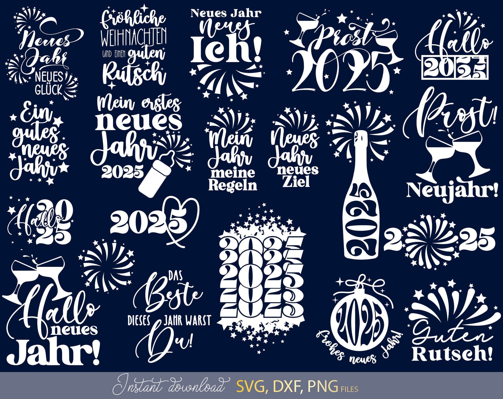 Neues Jahr plotter File SVG, PNG, DXF, Eps | Neues Jahr 2025 svg Bundle | German New Years cut files svg | svg files for Cricut, Silhouette