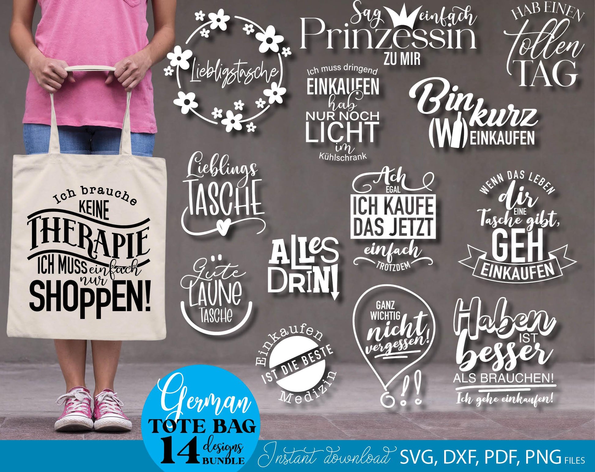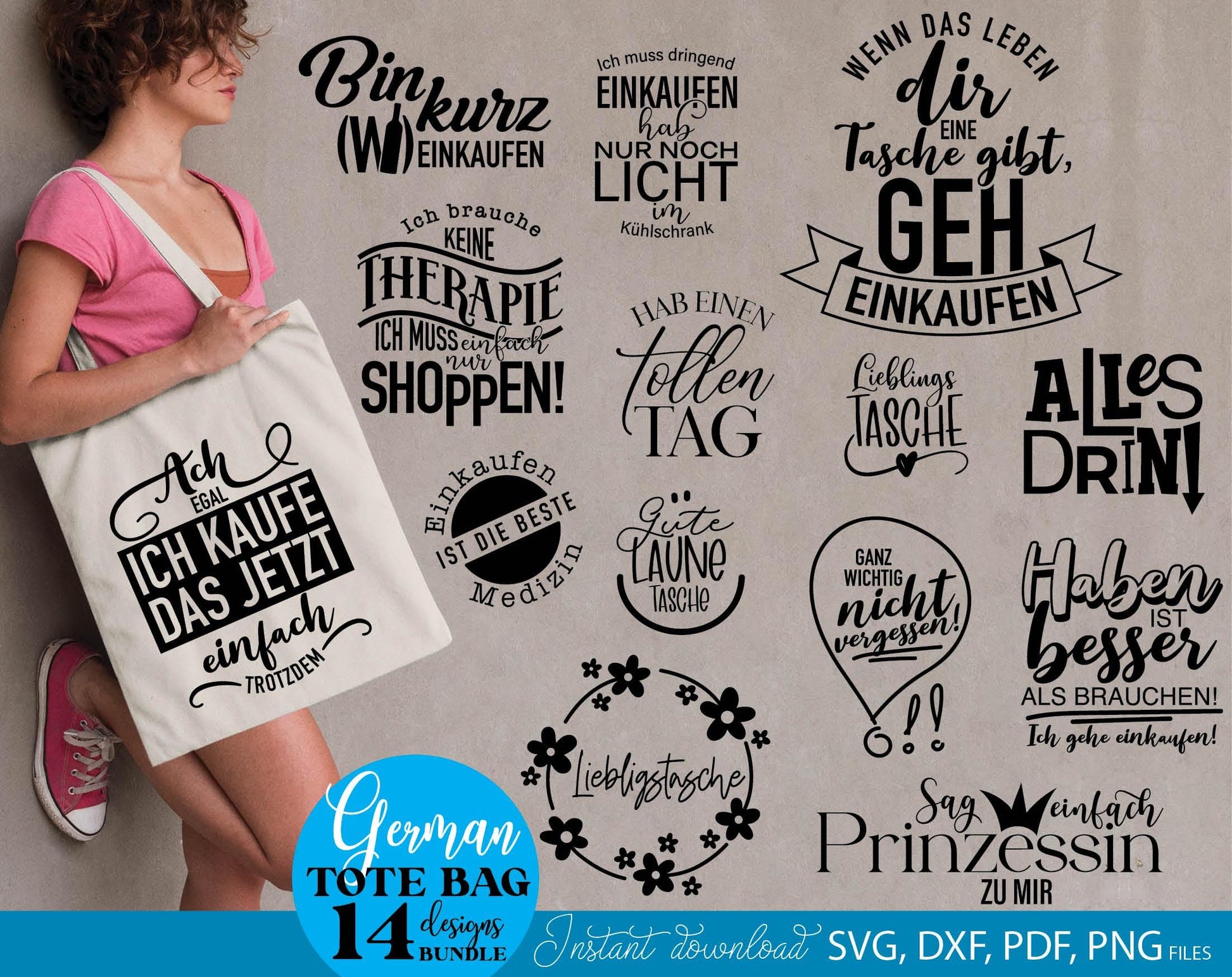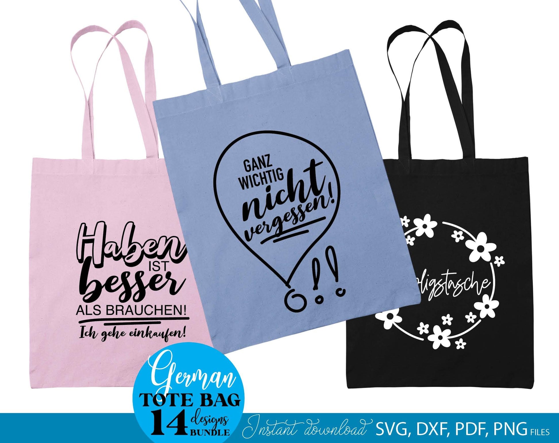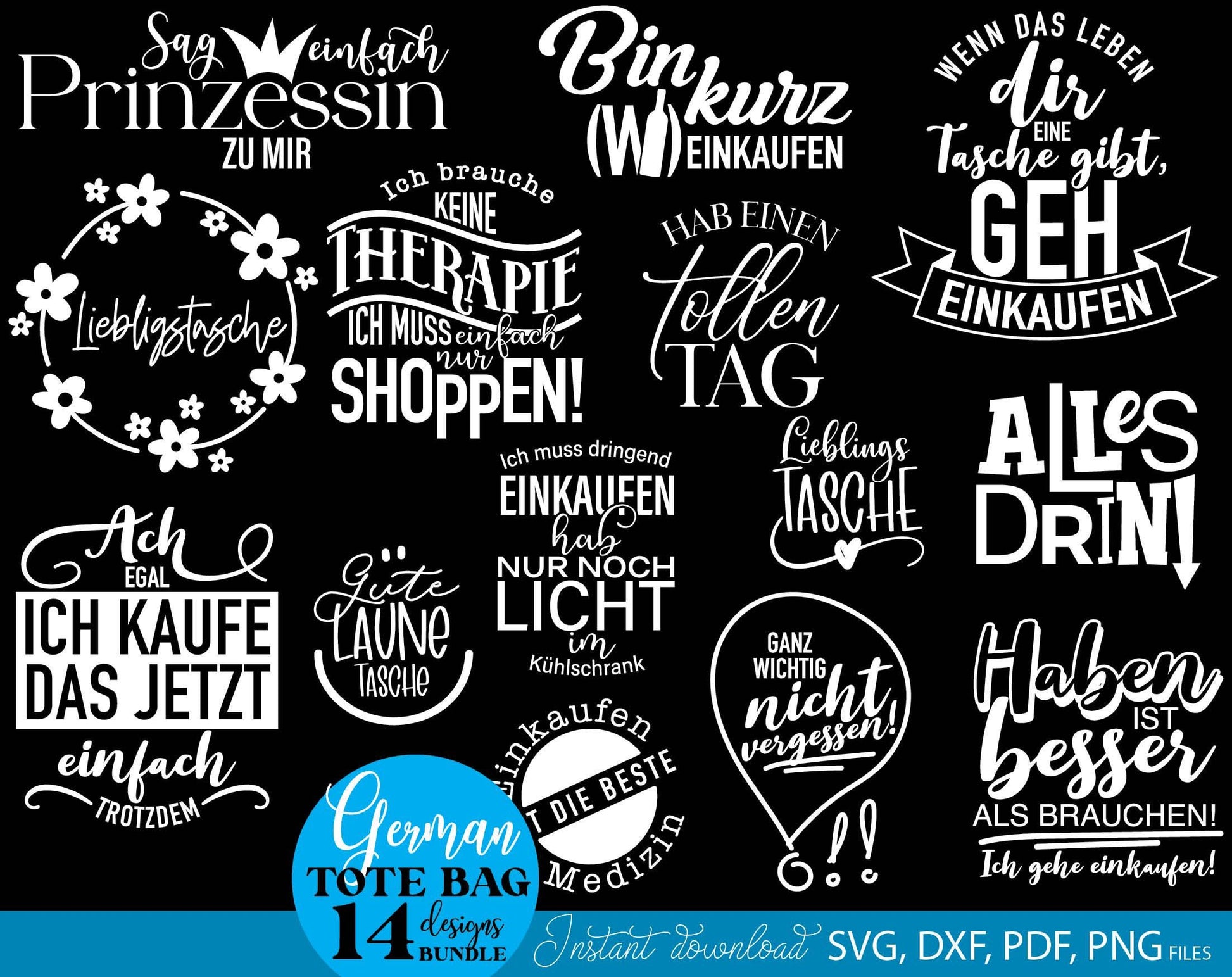 Plotterdatei taschen Sprüche bundle. German sayings svg png dxf pdf files included. Usable with Cricut, Silhouettestudio, lasercut, sublimation or UV DTF printers.