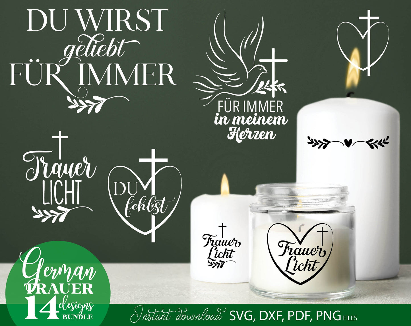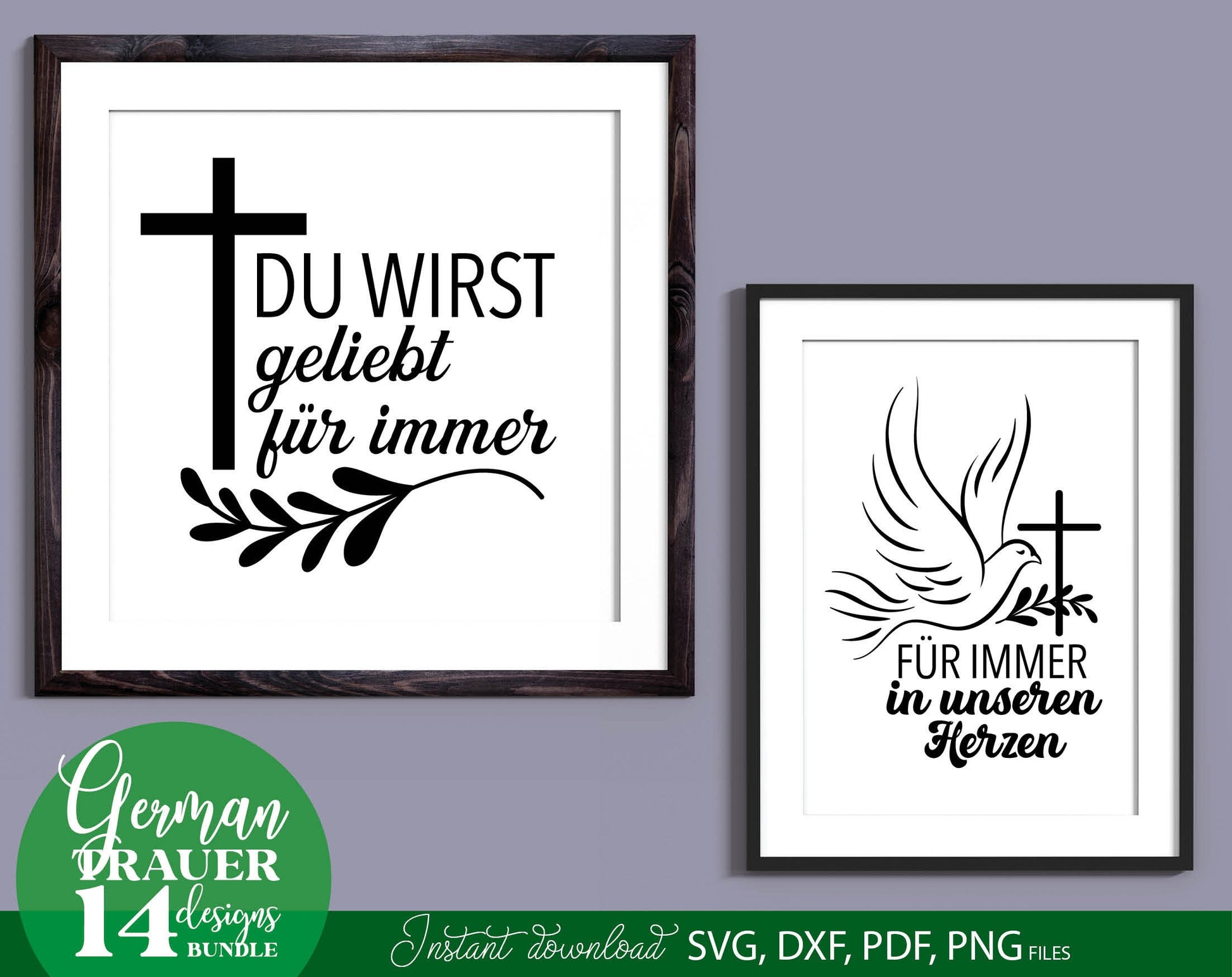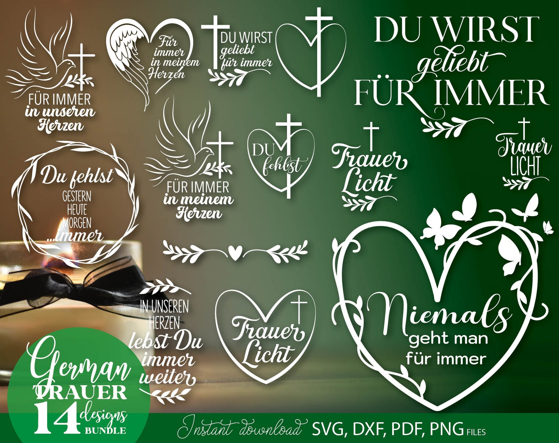 German Trauer Plotter File Bundle. SVG DXF PDF PNG files included. Compatible with Cricut, Silhouette, sublimation printers .etc. Cut from vinyl, use for sublimation or laser cut or grave projects. Buy now for a good price and enjoy!