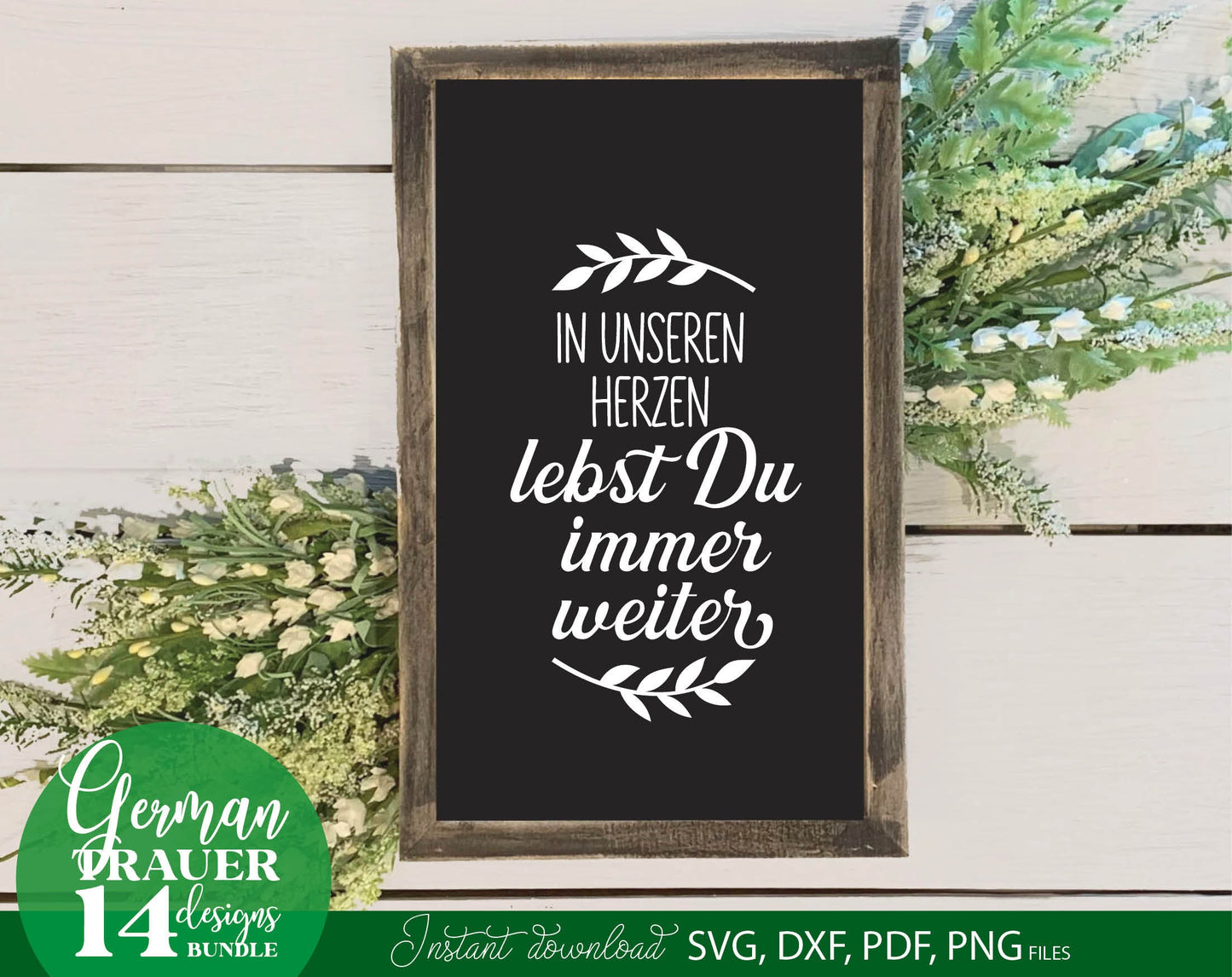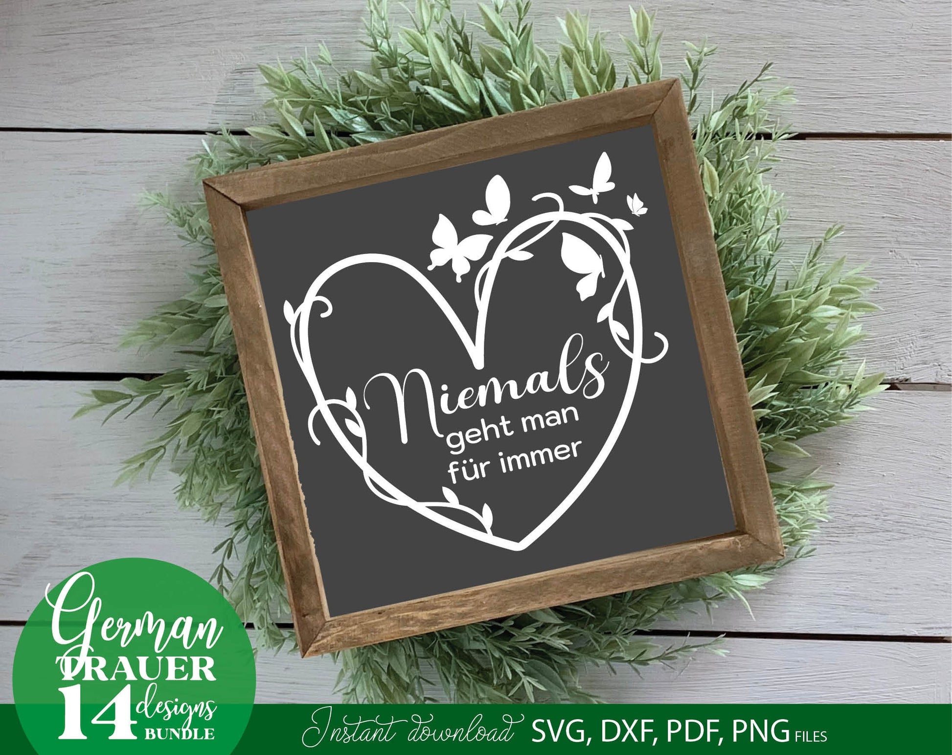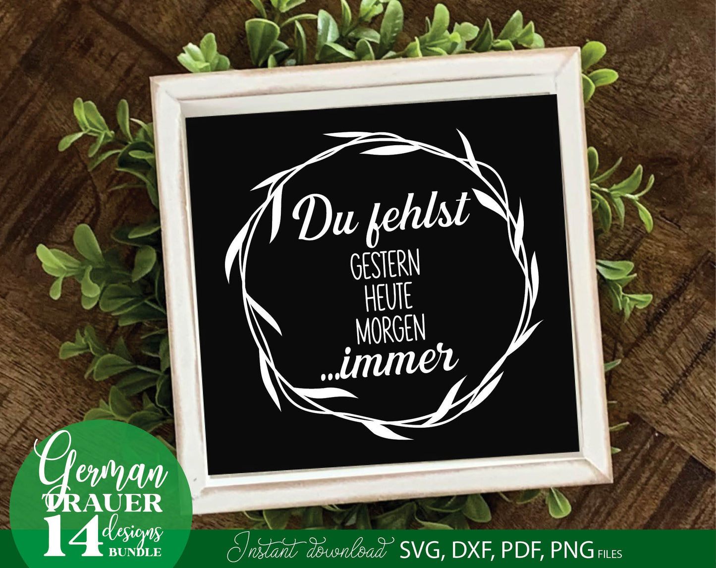 German Trauer Plotter File Bundle. SVG DXF PDF PNG files included. Compatible with Cricut, Silhouette, sublimation printers .etc. Cut from vinyl, use for sublimation or laser cut or grave projects. Buy now for a good price and enjoy!
