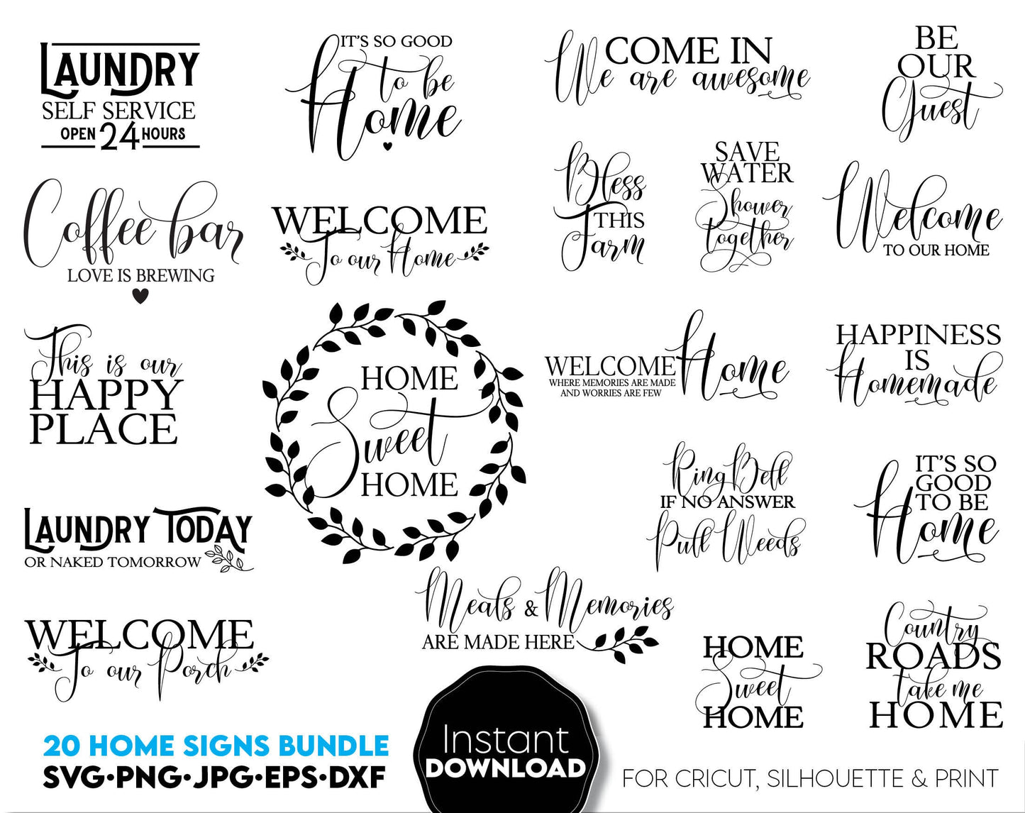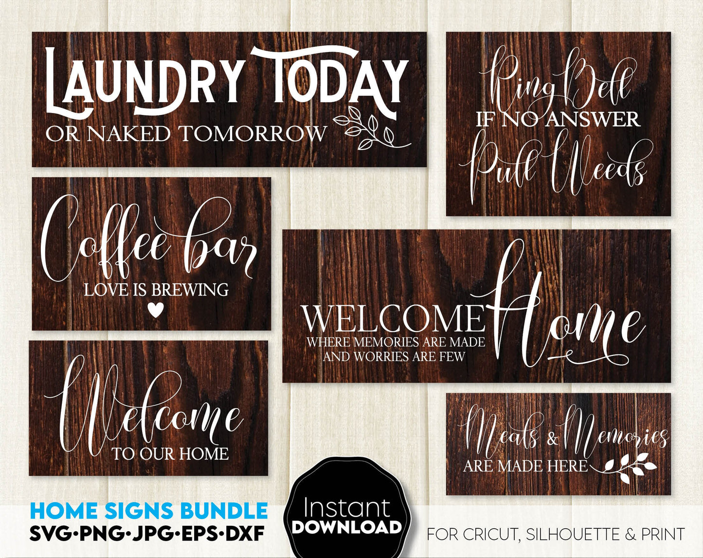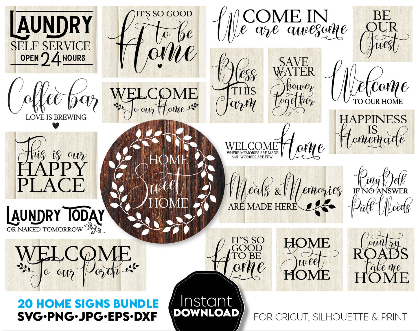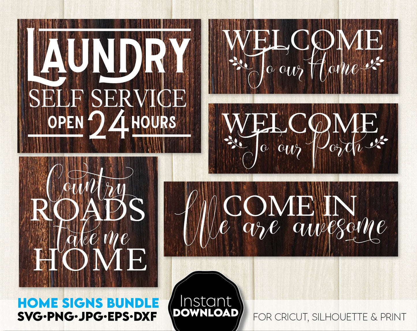 Farmhouse welcome signs svg png bundle with quotes for You home, flat or farmhouse front porch decoration with original design. Cut from Vinyl or use as laser cut files. Decorate your home and make it special!