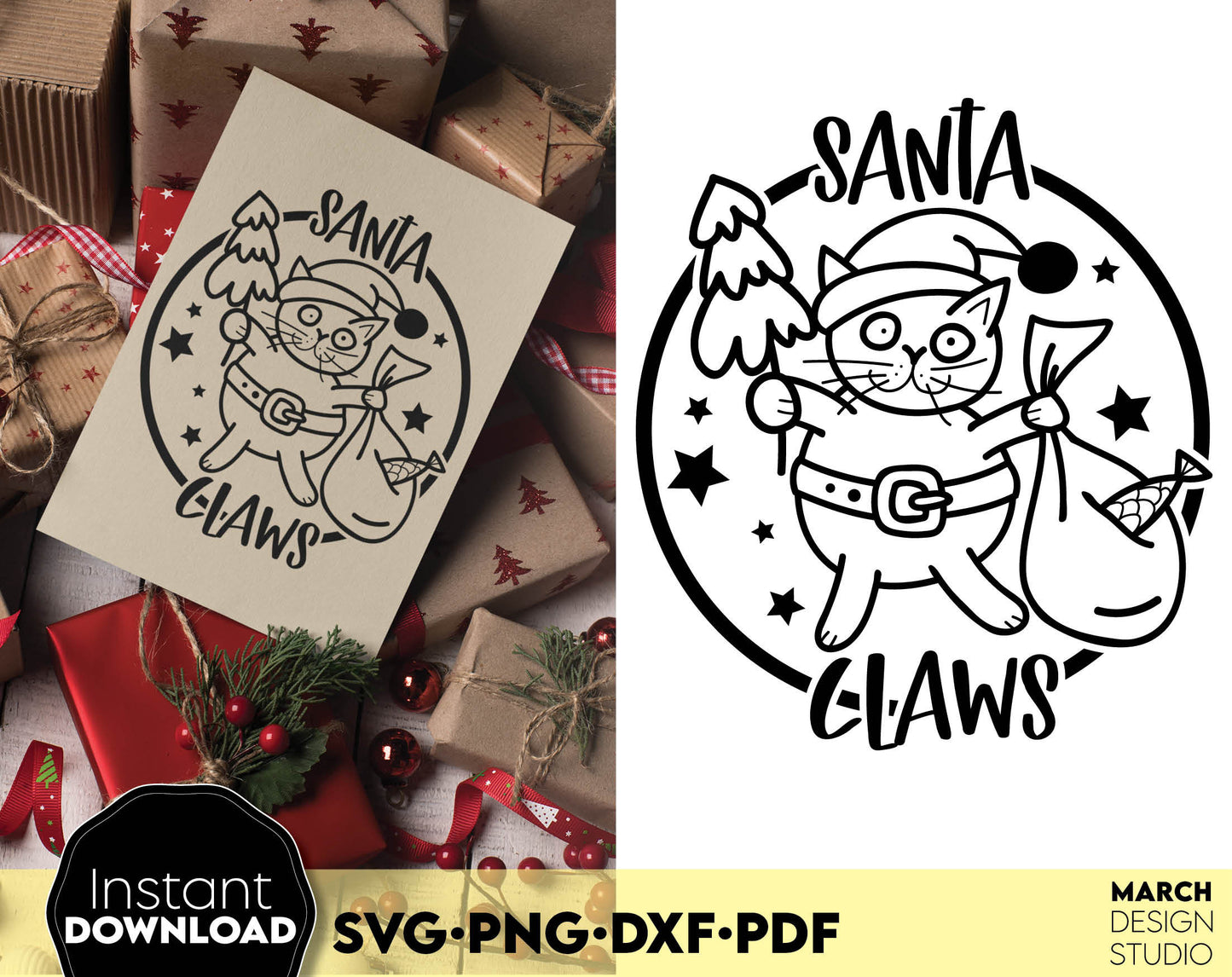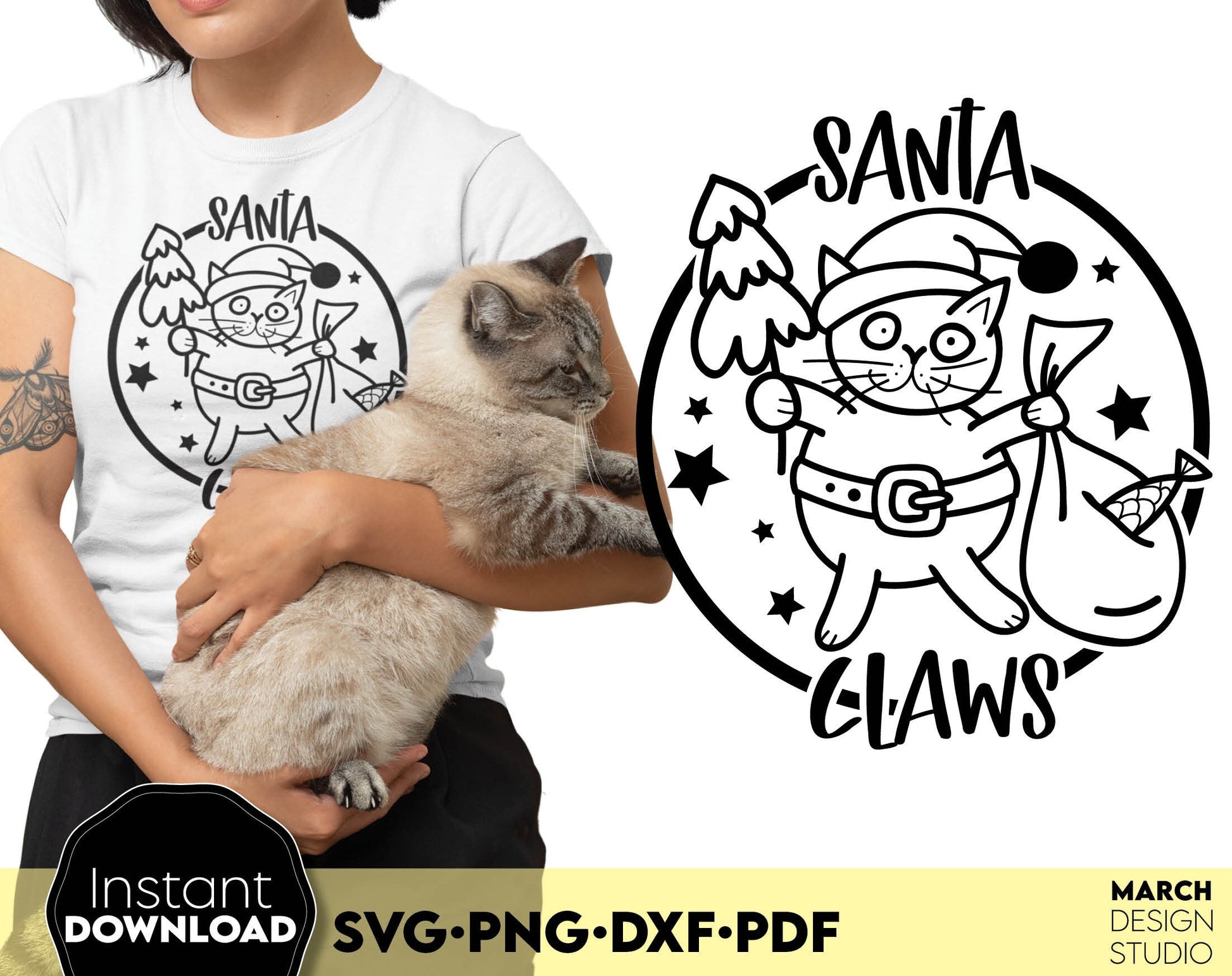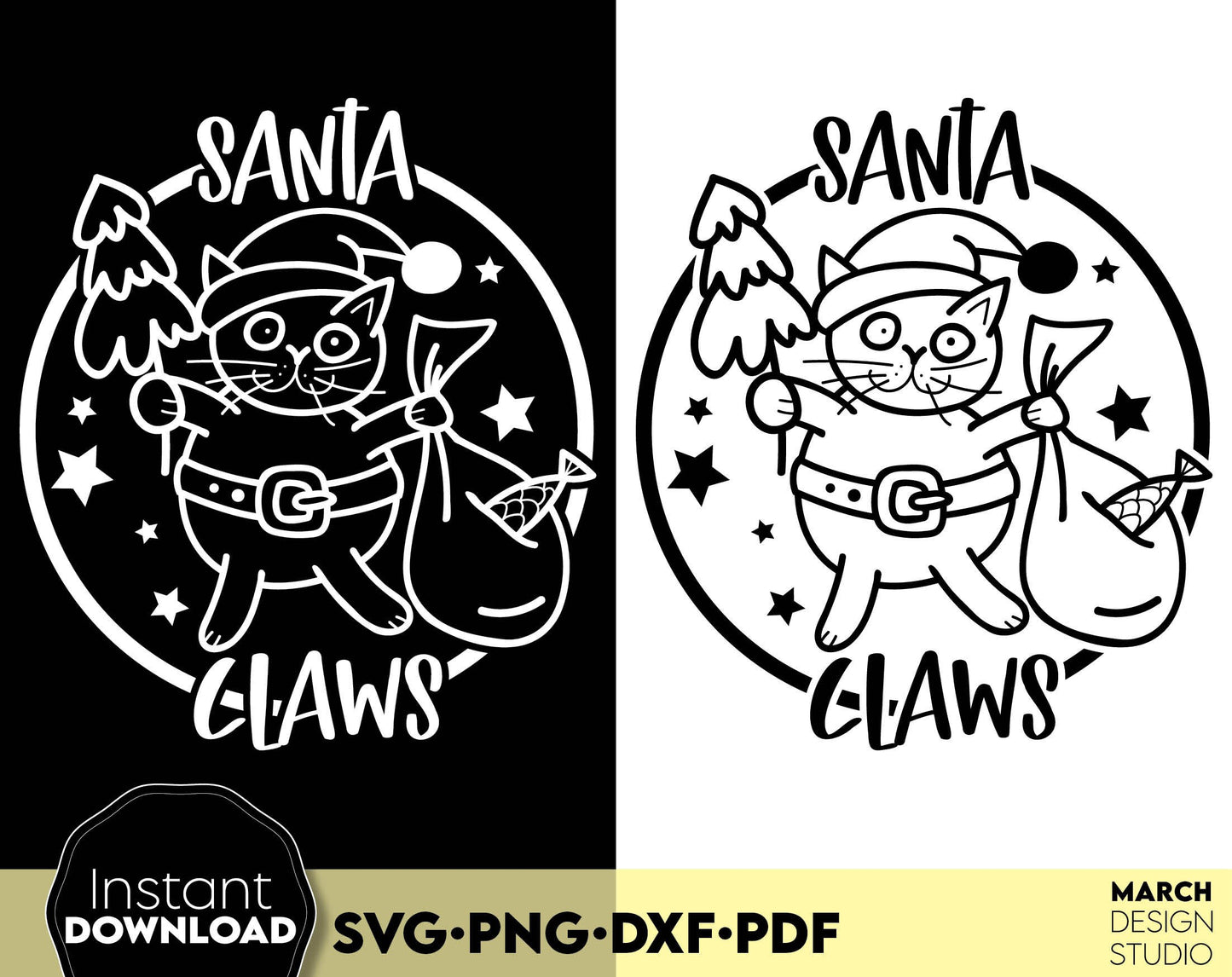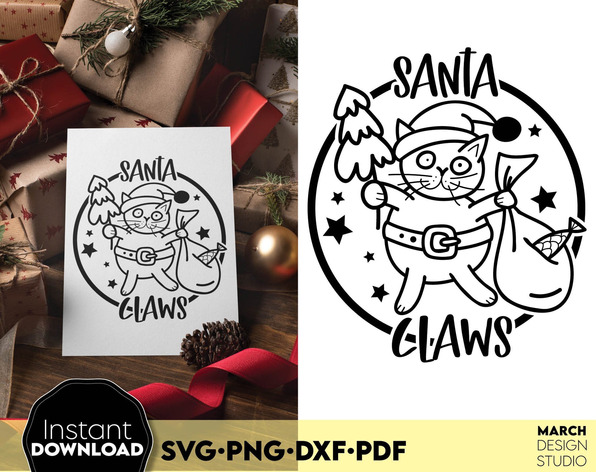 Santa Claws Christmas cat svg png dxf pdf. Funny Christmas cat gift ideas for cat mom. Compatible with Cricut, Silhouette or other equipment. Use for cutting from vinyl, use for sublimation or laser cut projects. Buy now for a good price and enjoy!