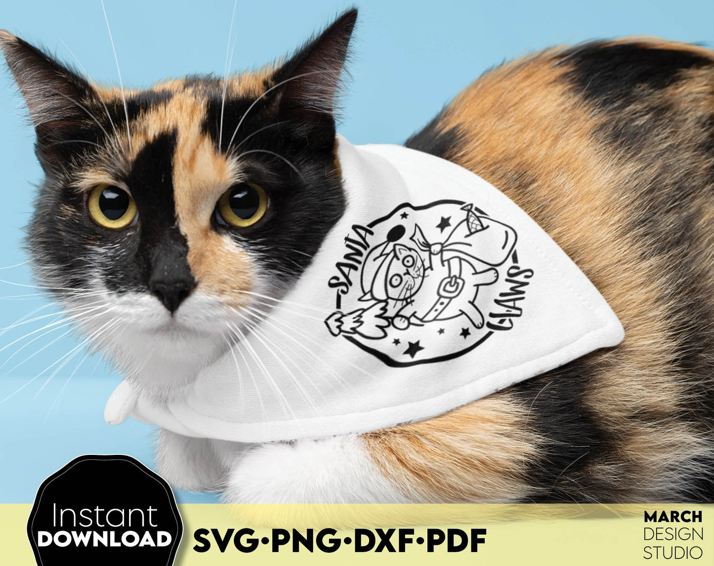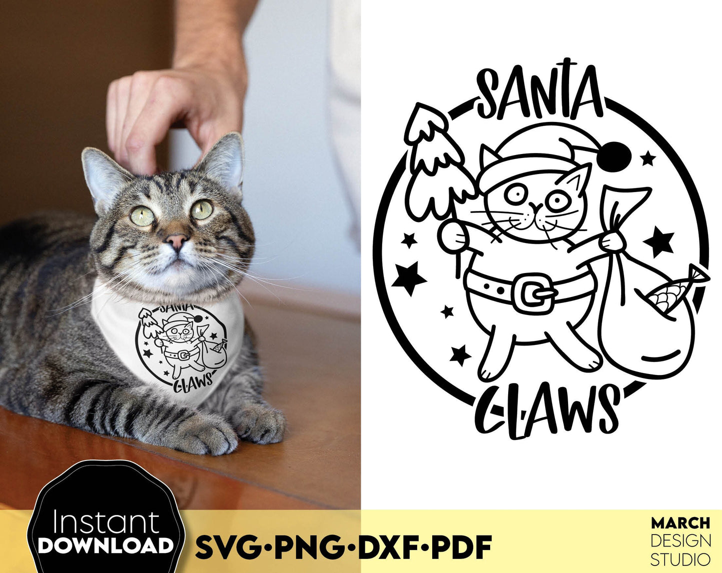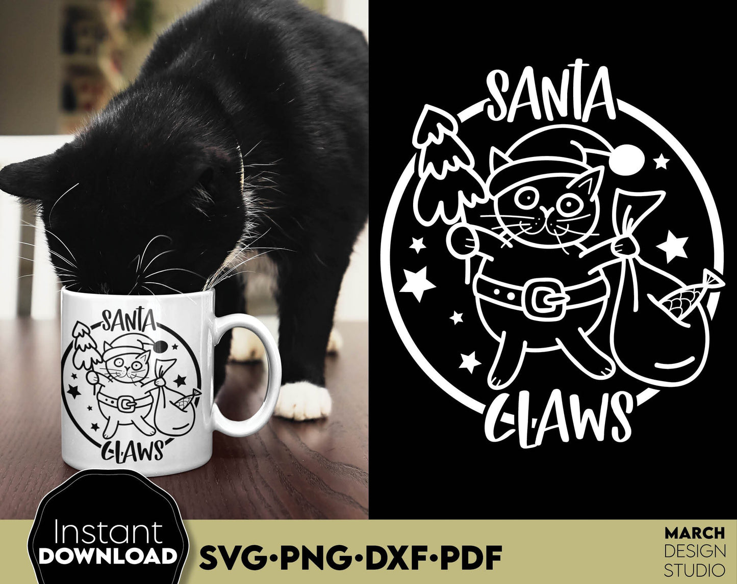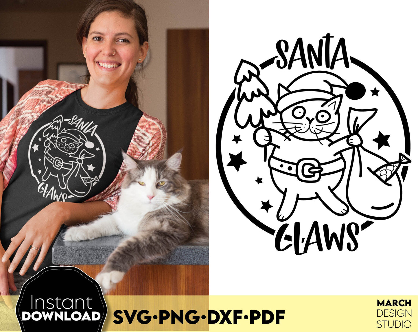 Santa Claws Christmas cat svg png dxf pdf. Funny Christmas cat gift ideas for cat mom. Compatible with Cricut, Silhouette or other equipment. Use for cutting from vinyl, use for sublimation or laser cut projects. Buy now for a good price and enjoy!