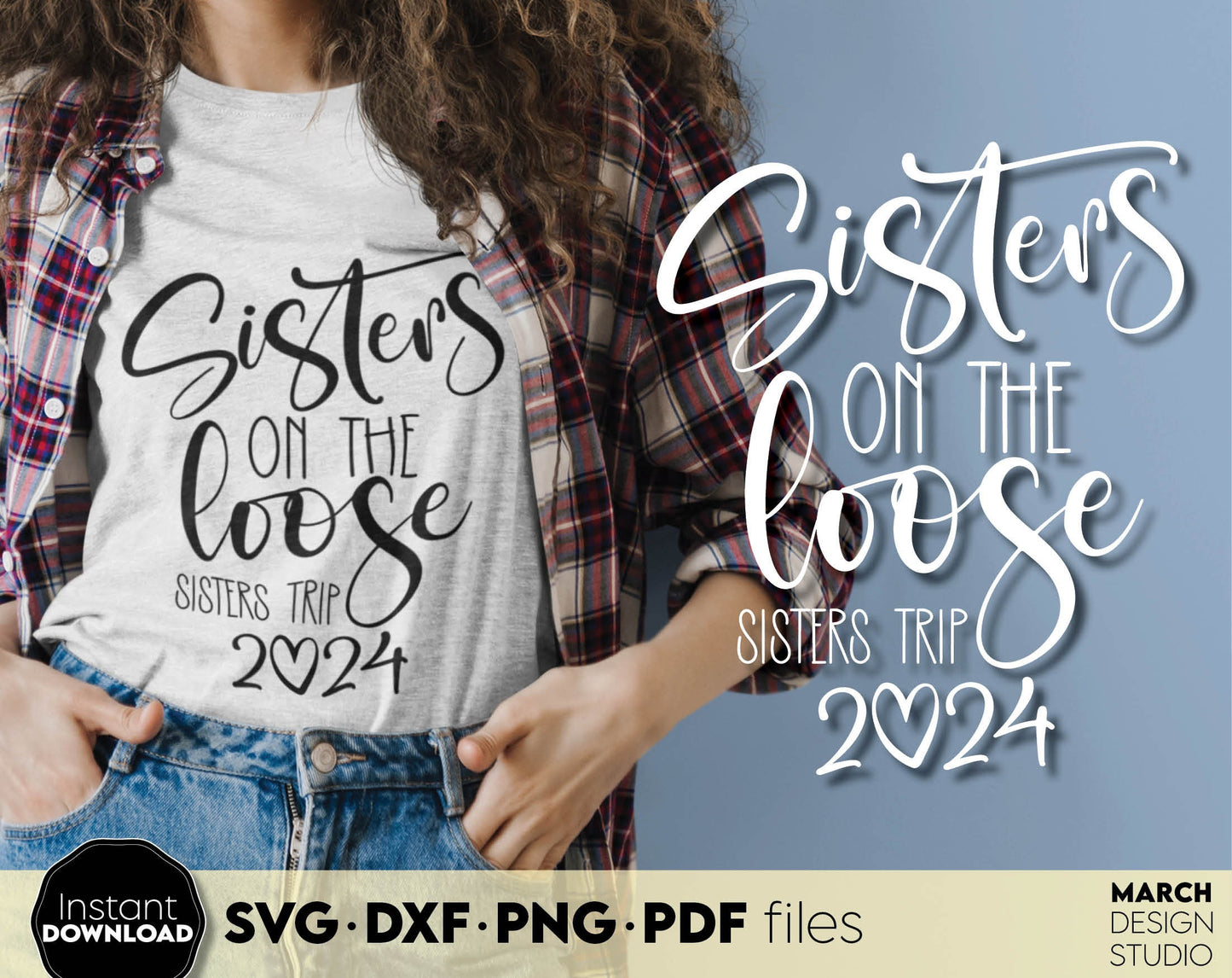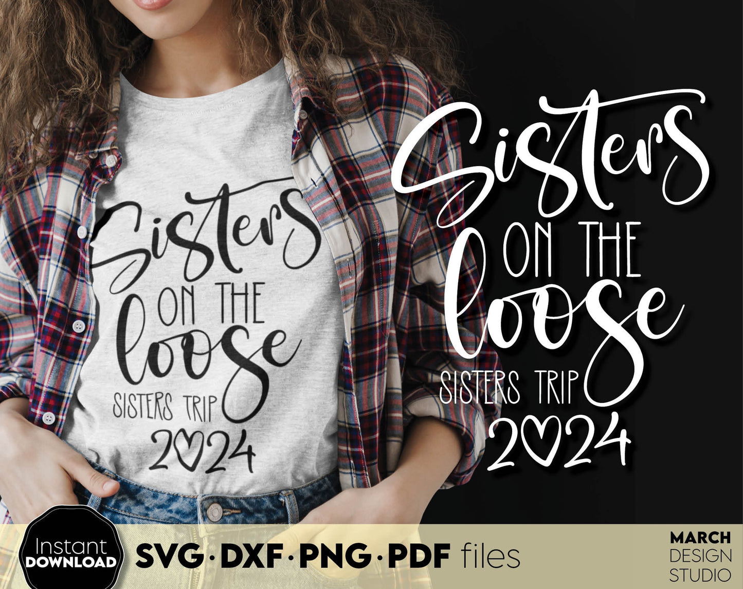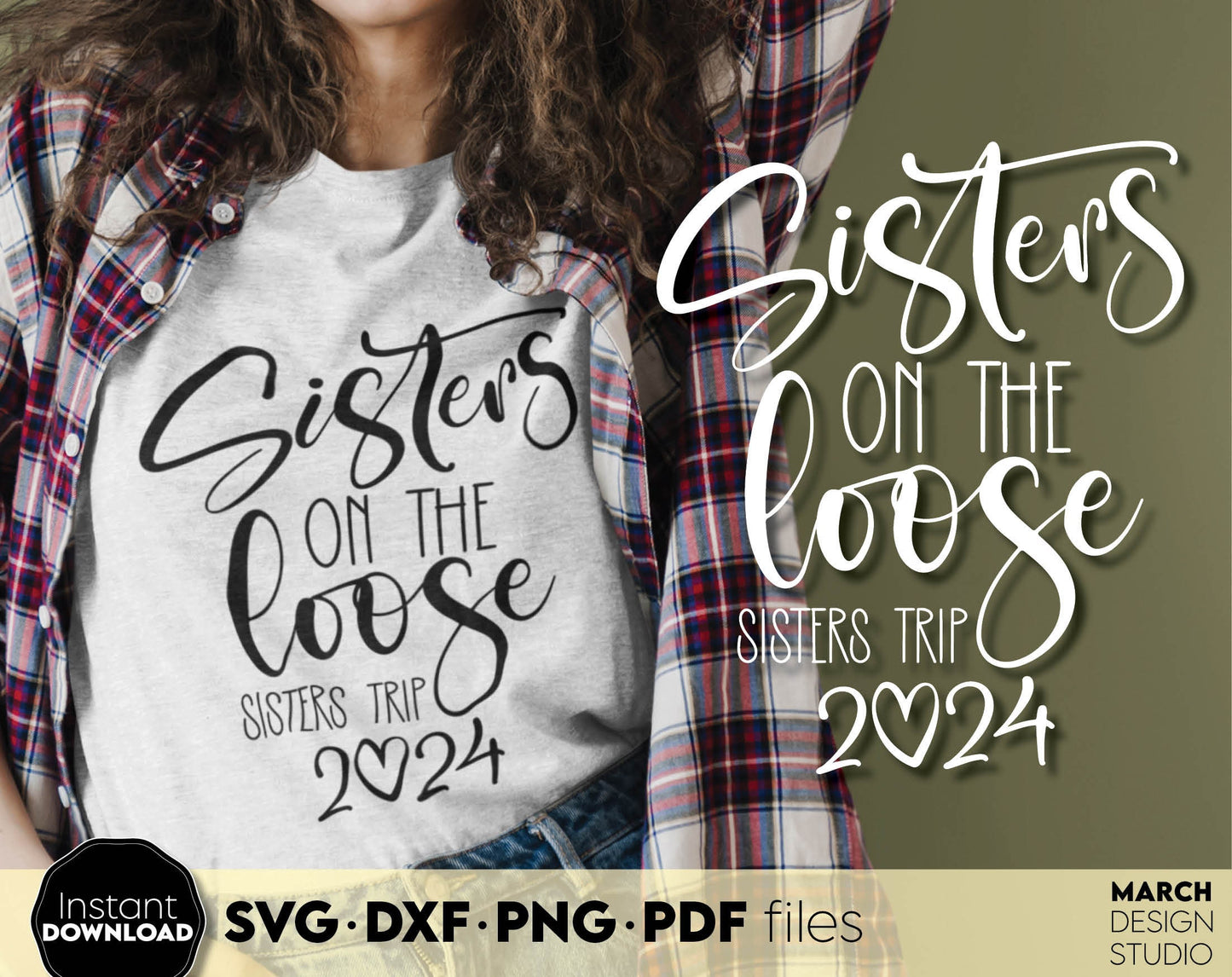 Sisters on the loose sisters trip 2024. Your girls summer trip matching shirts design. SVG DXF PNG PDF files included. Compatible with Cricut, Silhouette or sublimation printers. Cut from vinyl, use for sublimation or laser projects. Buy now and fun!