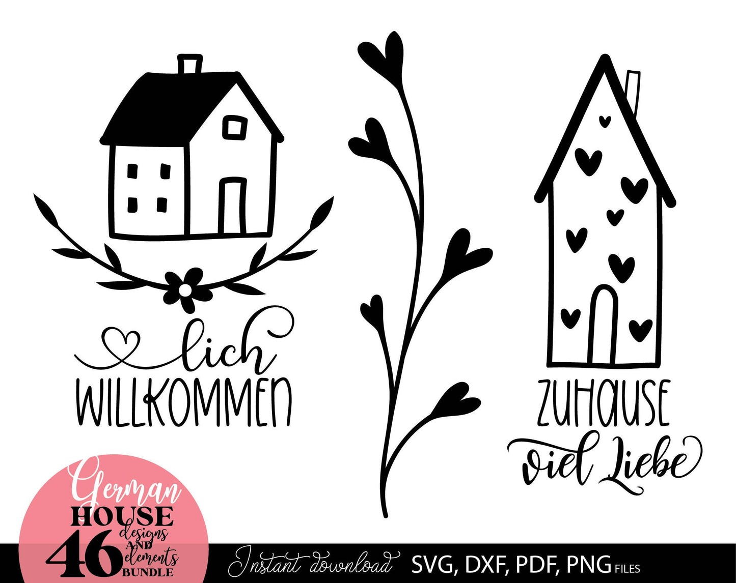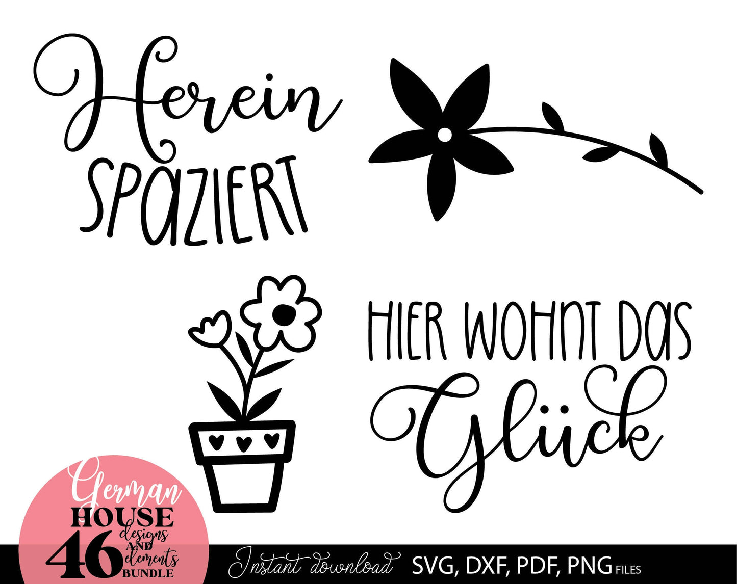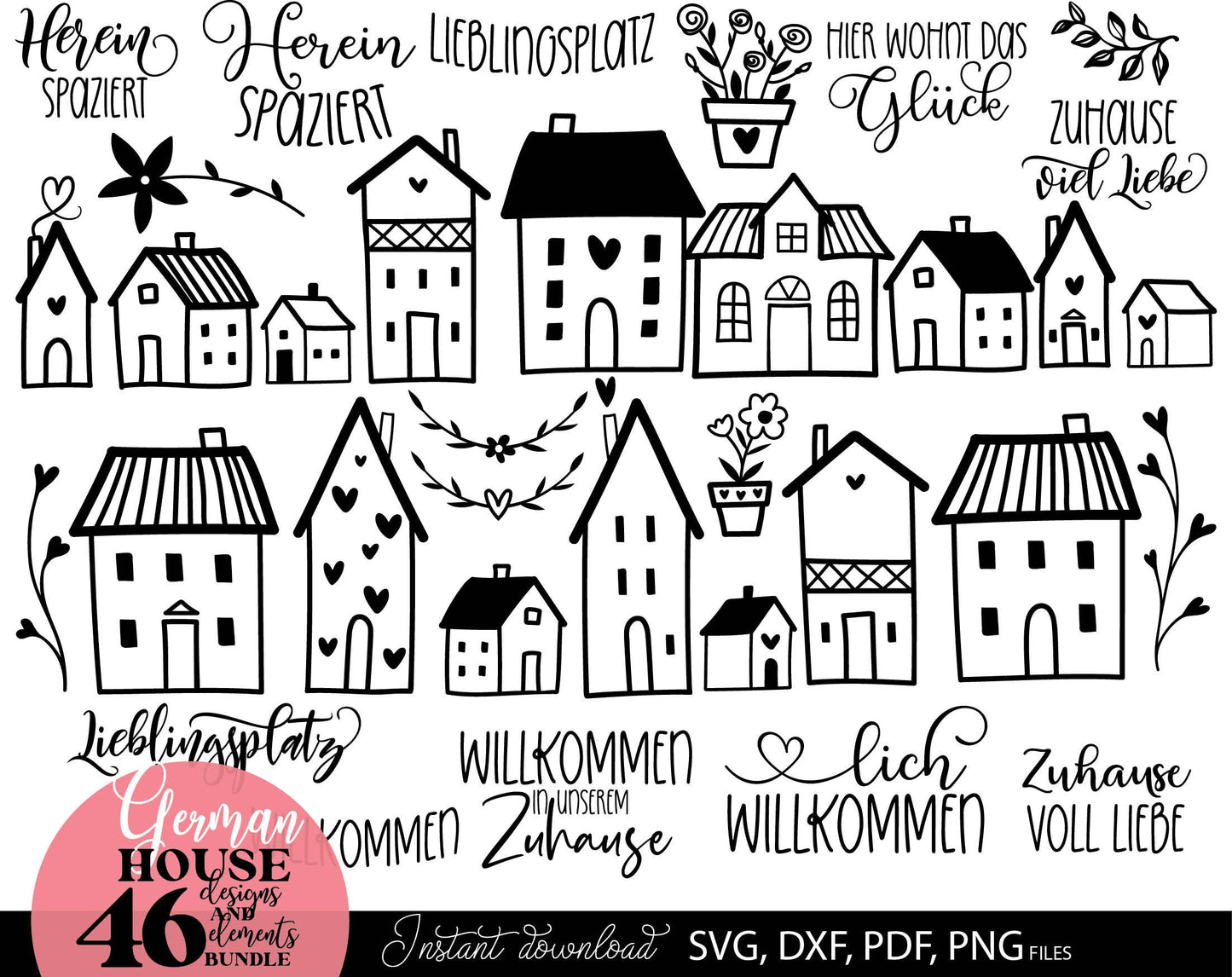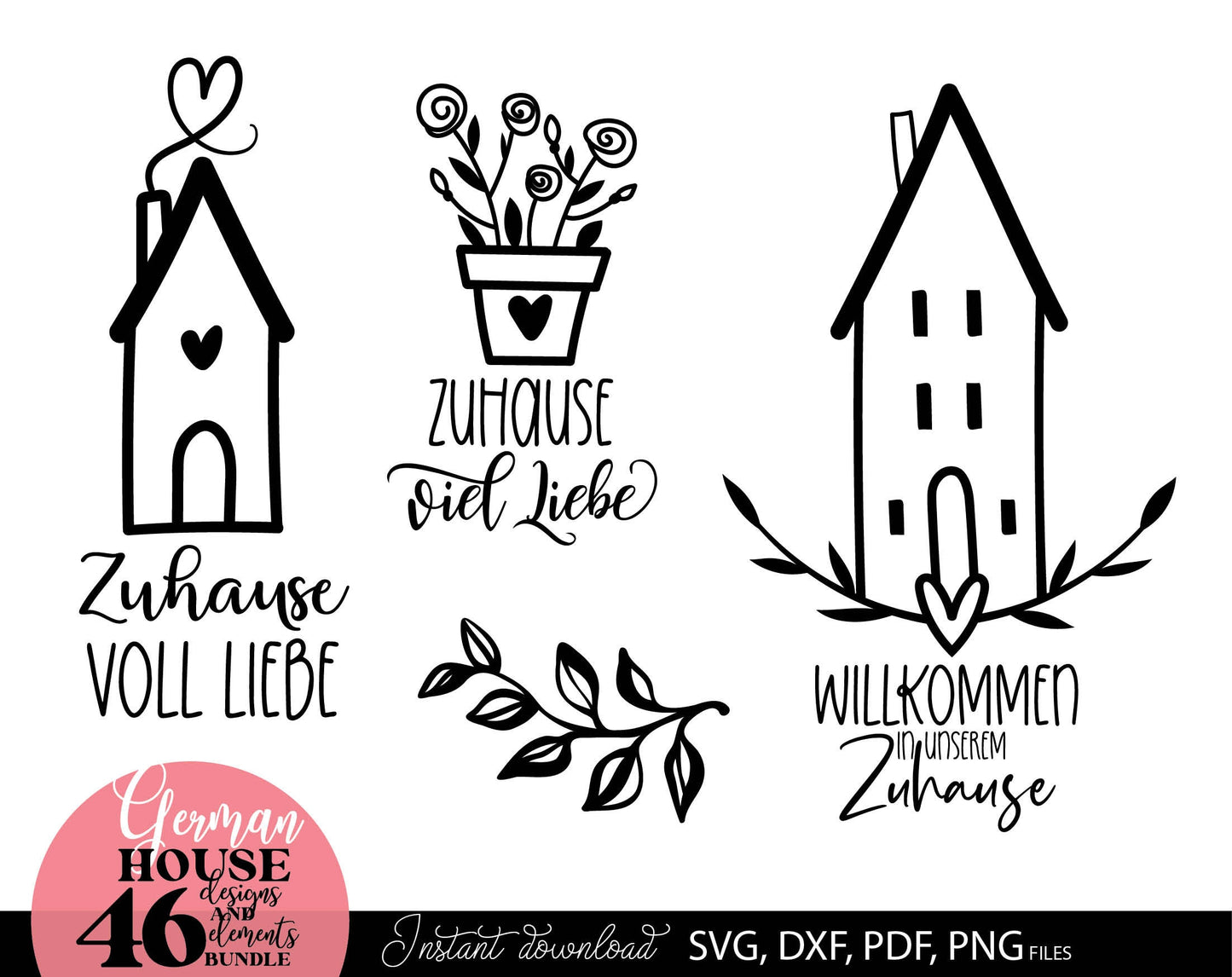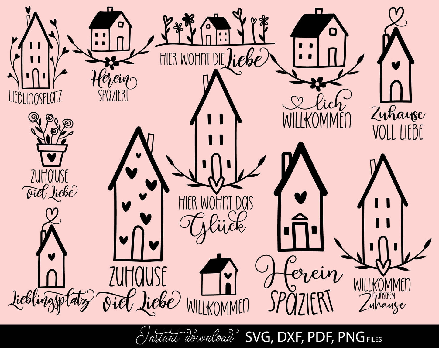 German zuhause willkommen plotter files bundle. SVG DXF PDF PNG files for included. Compatible with Cricut, Silhouette or other equipment. Cut from vinyl, use for sublimation or laser cut or grave projects as well. Buy now for a good price, enjoy!